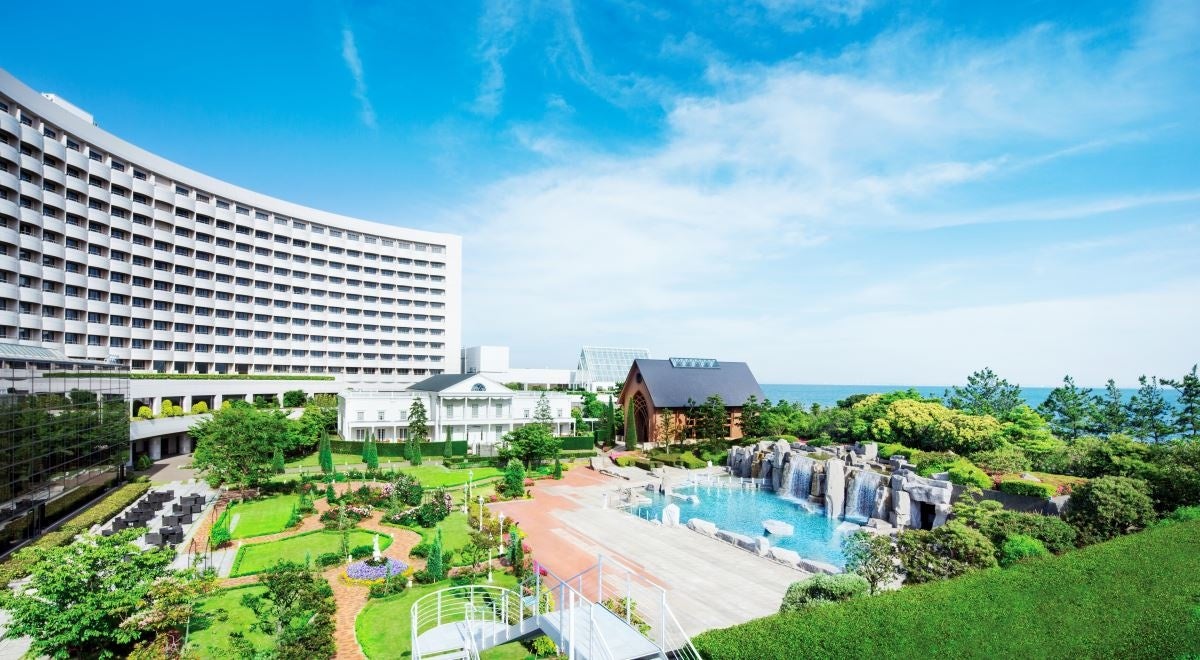 ヨーロッパの宮殿のような外観や季節の花々が咲くエレガントなロビーなど、南欧リゾートの雰囲気をもつホテル。