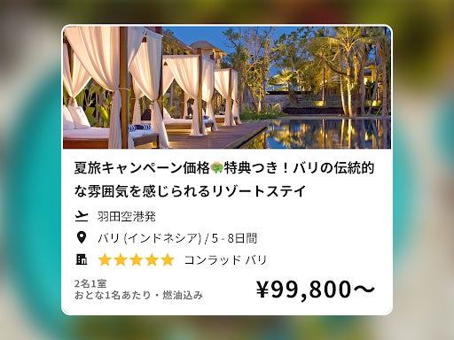 2022年4月からサービスを開始した海外旅行予約アプリ『NEWT(ニュート)』でも、夏休みなど海外旅行の人気シーズンに向けてより多くのお客様に”かんたん・おトク・えらべる・あんしん”な海外旅行を楽しんでいただこうと考え、今回のキャンペーンを開始いたしました。