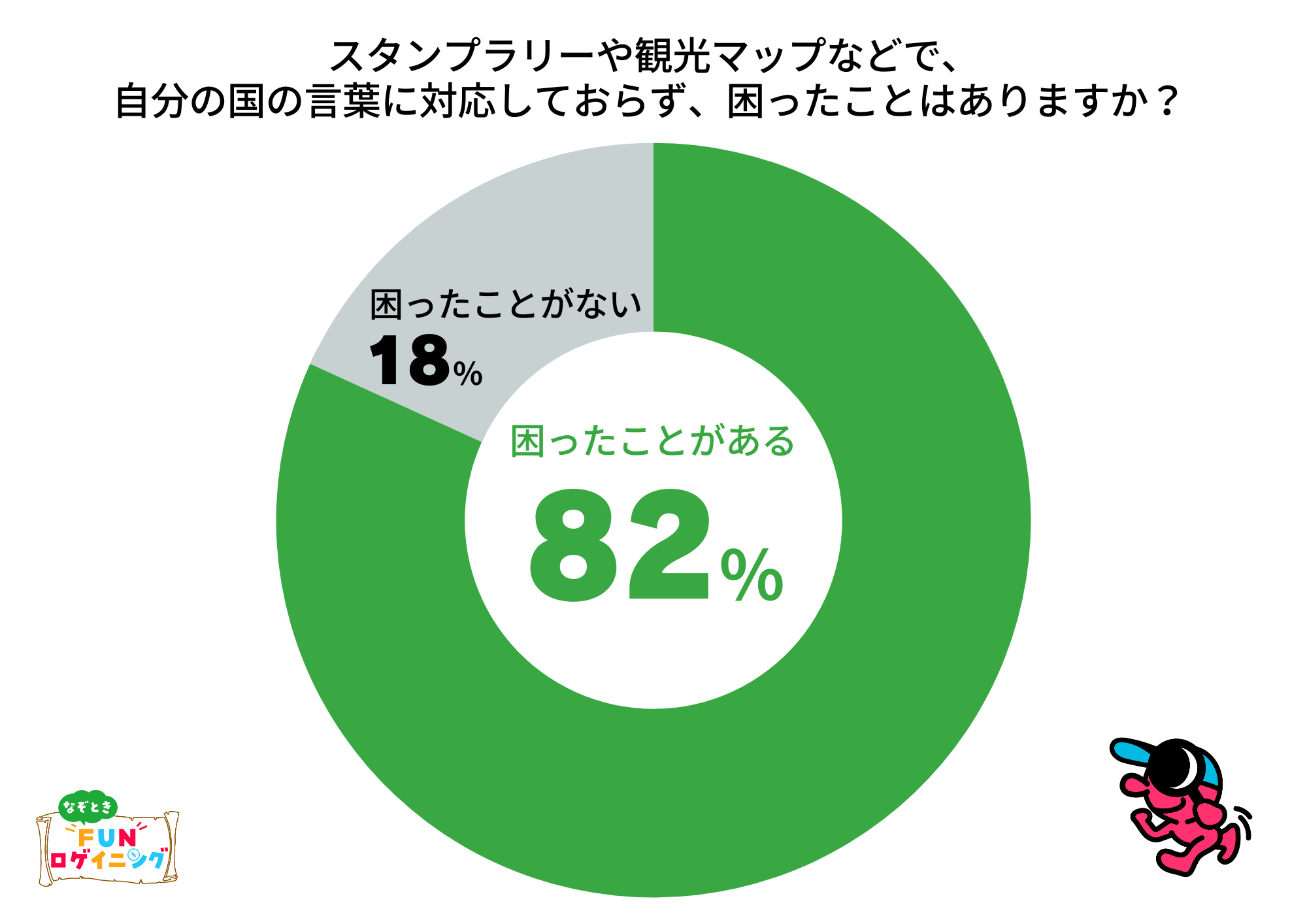 ・82%の人がスタンプラリーや観光マップ等で、自国語に対応していないことで困った事がある。