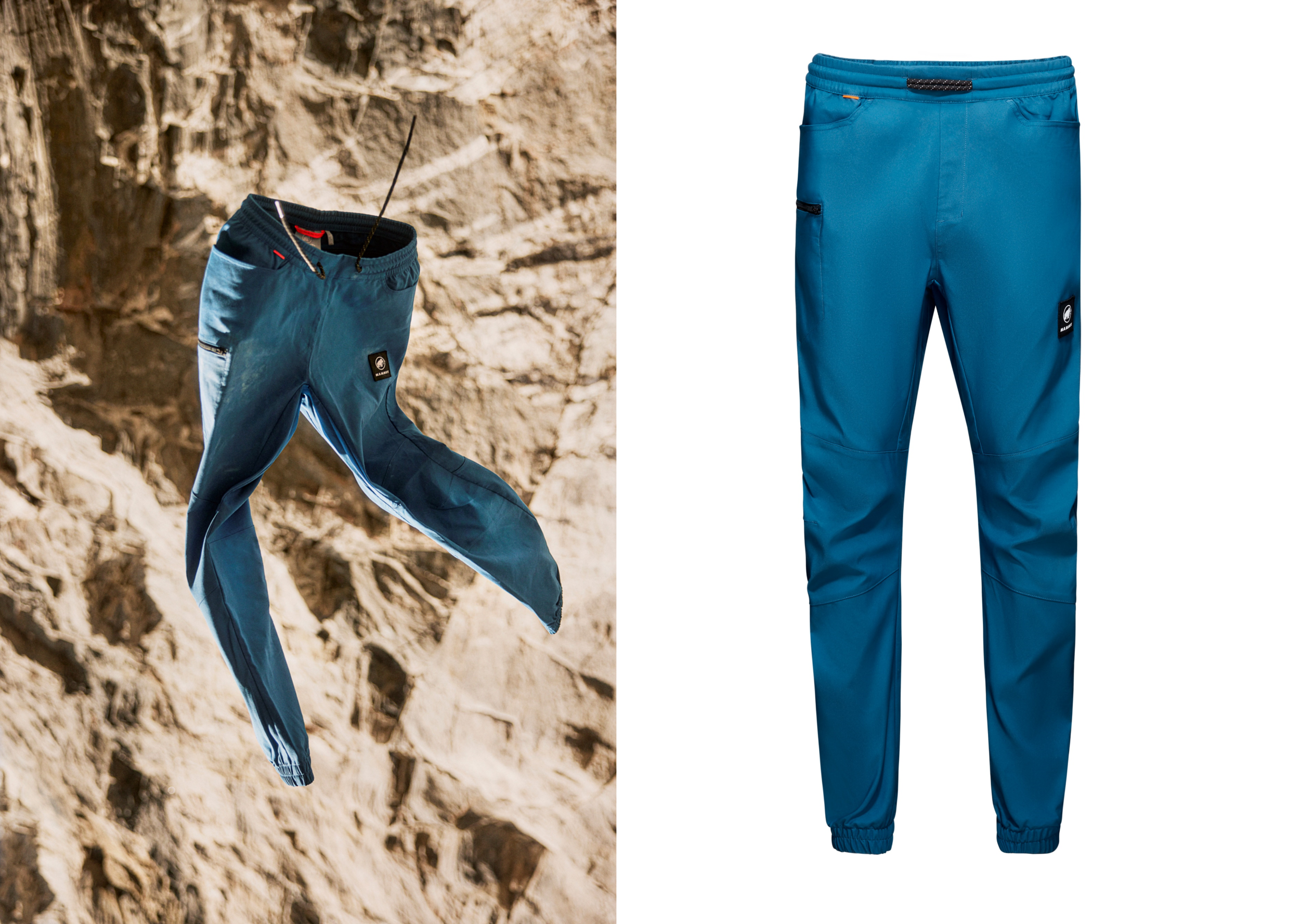 コットンの様な風合いでありながらも高い伸縮性と耐久性を誇る新作クライミングパンツ。クライマーからの意見を反映し、太もも部分にはジッパー付きのポケットを配置し、ハーネスを着用した状態でも出し入れが可能になっています。また、万が一逆さになった時も、ポケットから物が落ちる心配がありません。ウェスト部分はドローコードも入っており、サイズ調整も簡単です。生分解性素材を使用している点もポイントで、パフォーマンスと環境配慮を両立したマムートらしいクライミングパンツです。また、クライミング用のパンツを普段使いで活用すると、この上ない快適さを感じることが出来て、とても贅沢です。
