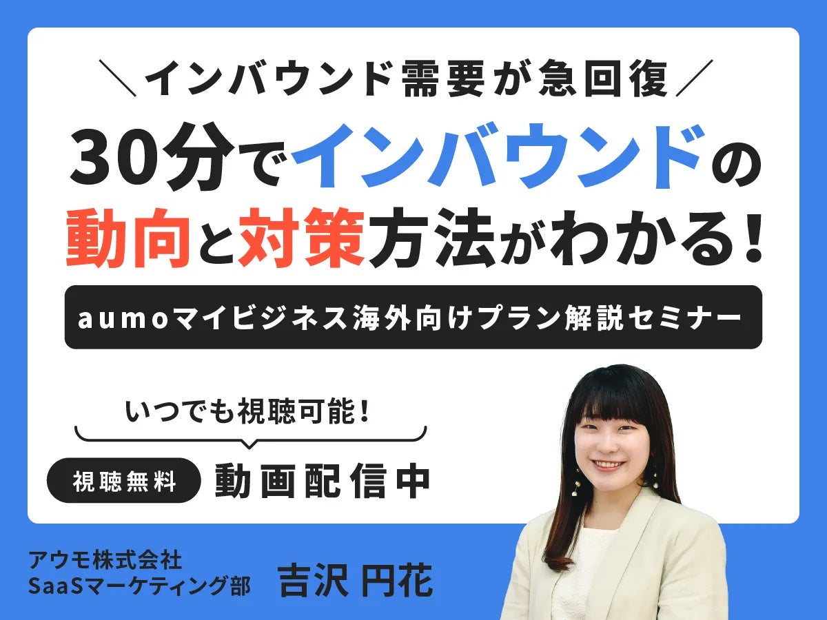 aumoメディアのグローバル展開にともない、訪日観光客に向けたマーケティングをおこなう事業者に向けて、「訪日観光客」や「インバウンド需要」をテーマにしたセミナー動画を配信します。