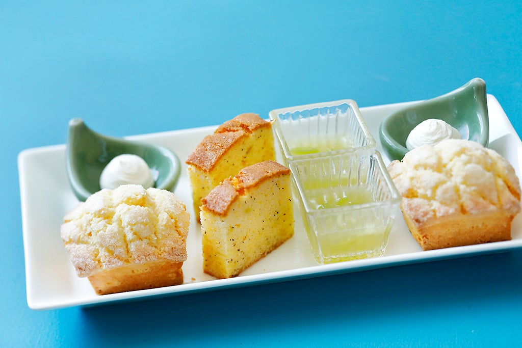 第二弾のメニューに登場するのは、昨年ご好評いただいた「ホイップサンド」をはじめに、今回より新しく加わった「シュークリーム」、「ココナッツのパンナコッタ」、「紅茶のケーキ」、そしてシェフパティシエ貝塚 文浩(かいづか ふみひろ)が得意とするチョコレートとメロンを合わせた「ホワイトチョコレートのムース」。