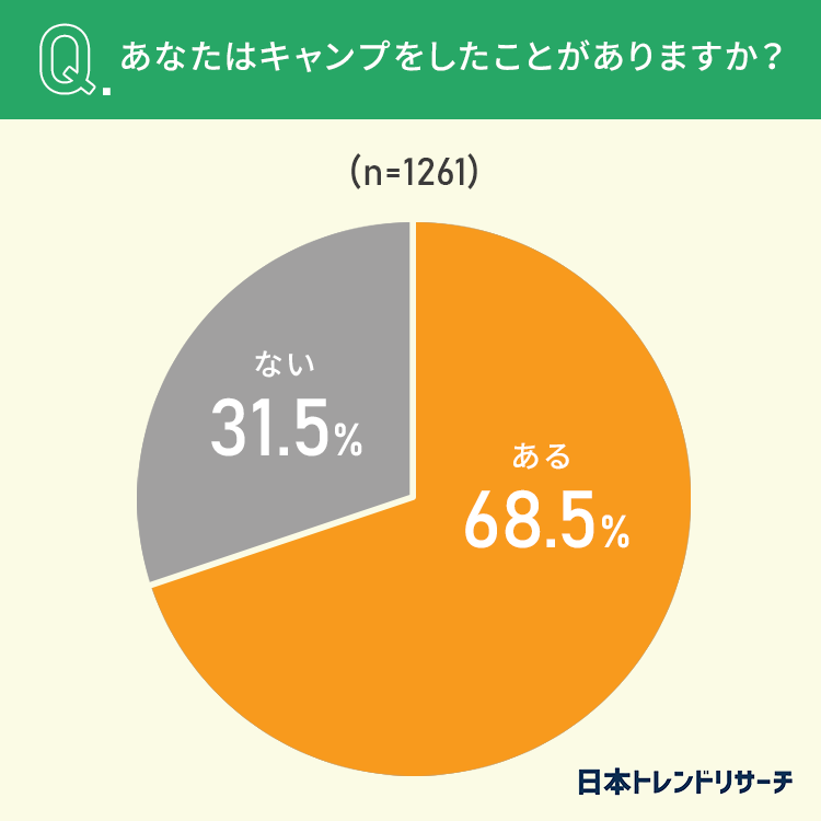 68.5%と、半数以上の方がキャンプをしたことが「ある」と答えました。