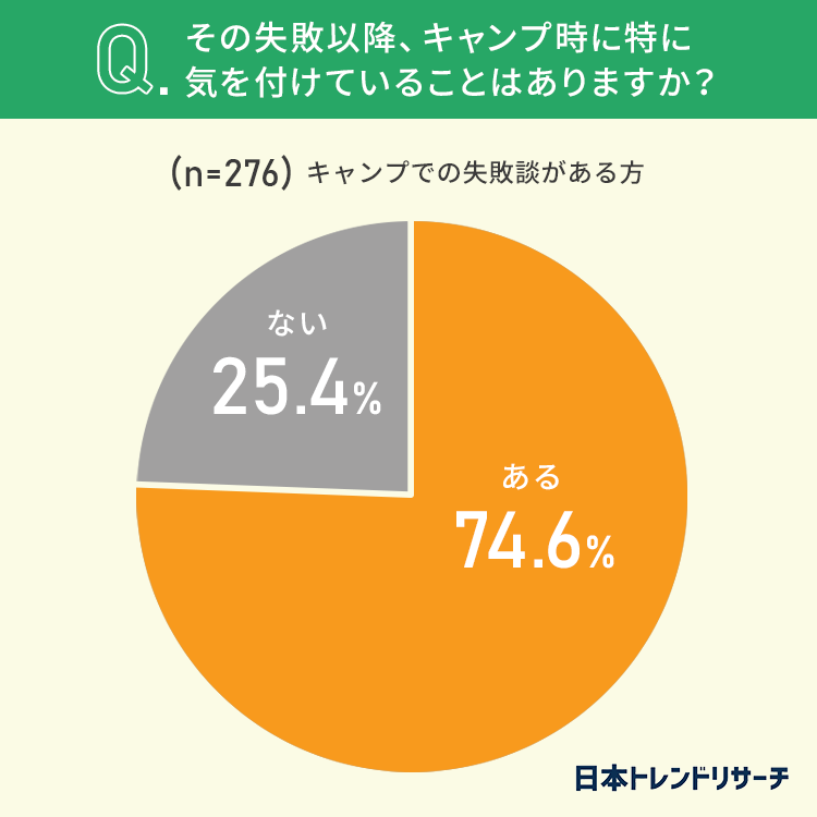 74.6%の方が、その失敗以降、キャンプ時に特に気を付けていることが「ある」と回答しました。