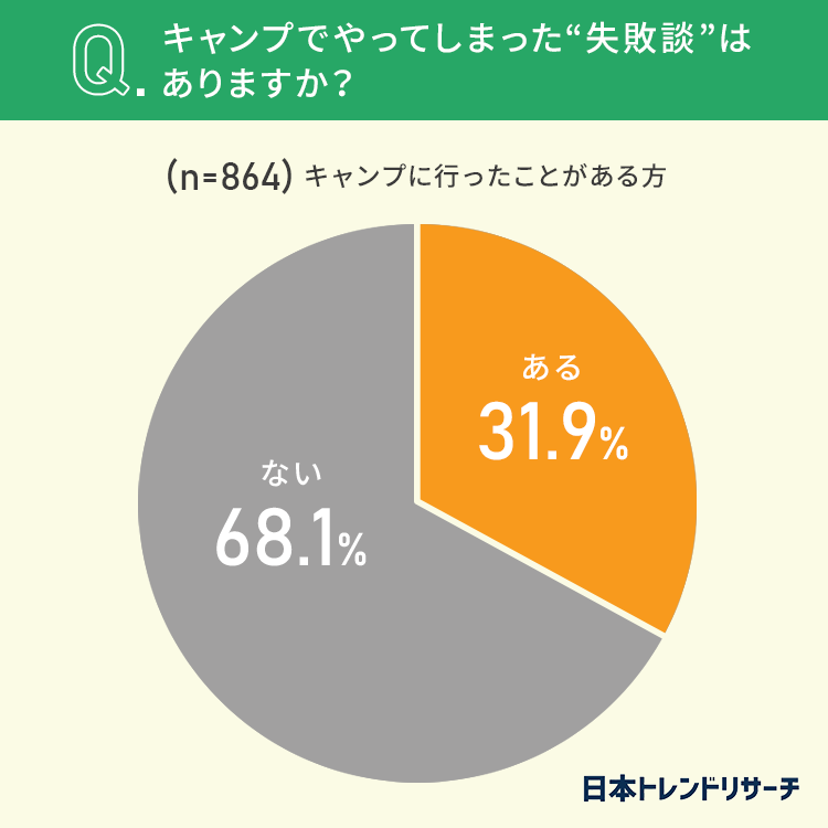 31.9%の方が、キャンプでやってしまった“失敗談”が「ある」と回答しました。