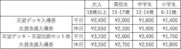 (天望デッキ券または天望デッキ・天望回廊セット券)