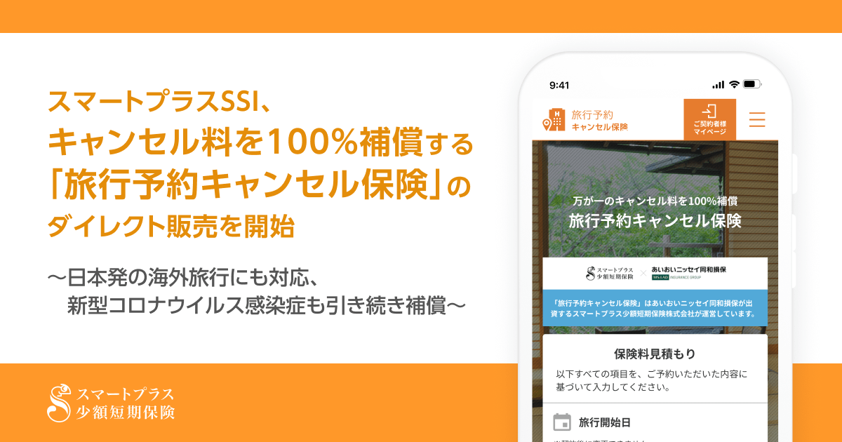 スマートプラスSSIはこれまで、やむを得ない理由で旅行に行けなくなった場合にキャンセル料を100%補償する「旅行予約キャンセル保険」を、宿泊予約プラットフォーム事業者を通して提供してきました。この度、「飛行機やレンタカーなどの交通費も補償して欲しい」「個人旅行だけでなく、パッケージツアーも補償して欲しい」といったお客様の要望に応えて、スマートプラスSSIのサイトから直接申し込めるダイレクト販売を開始します。