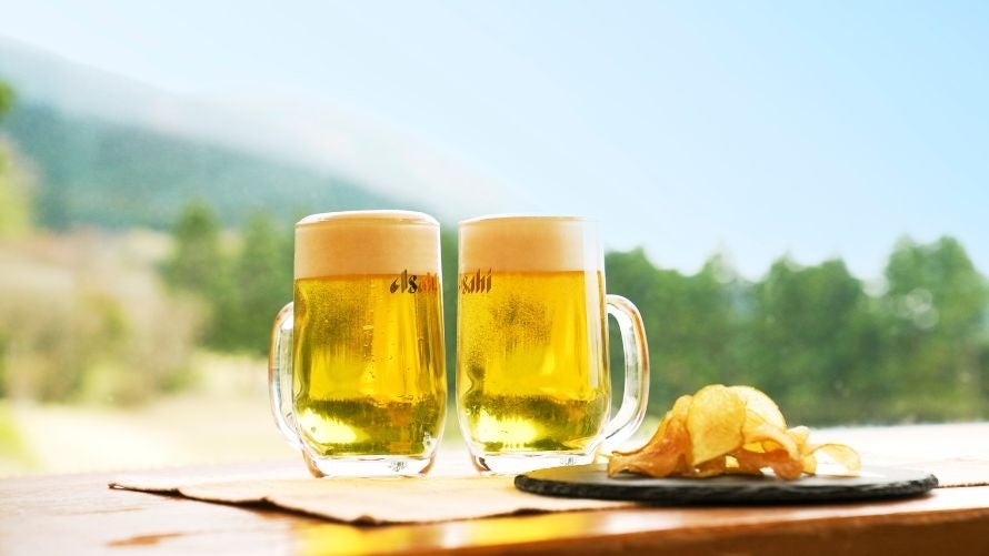 新緑に包まれた空間で夕涼みを楽しみながら冷えた生ビールをいただく。