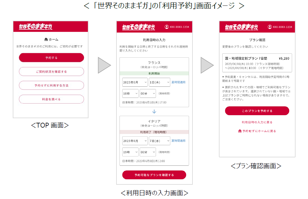 ※ 「ドコモのホームページ」や「ドコモ海外利用」アプリ内に表示されるサービス名称などは同日午前から変更されますが、予約機能・増設された利用期間のご利用は正午から可能となります。「ドコモ海外利用」アプリをご利用になる場合は、アプリを最新のバージョンにアップデートのうえご利用ください。