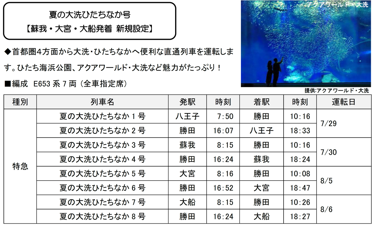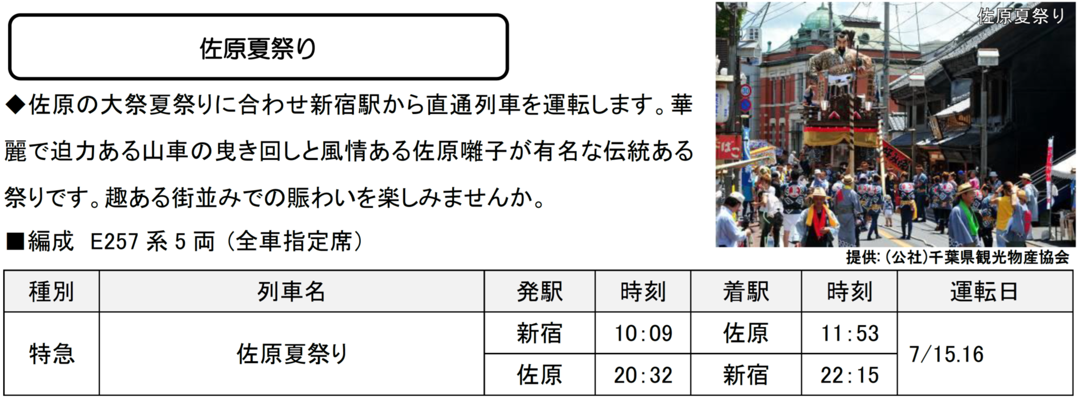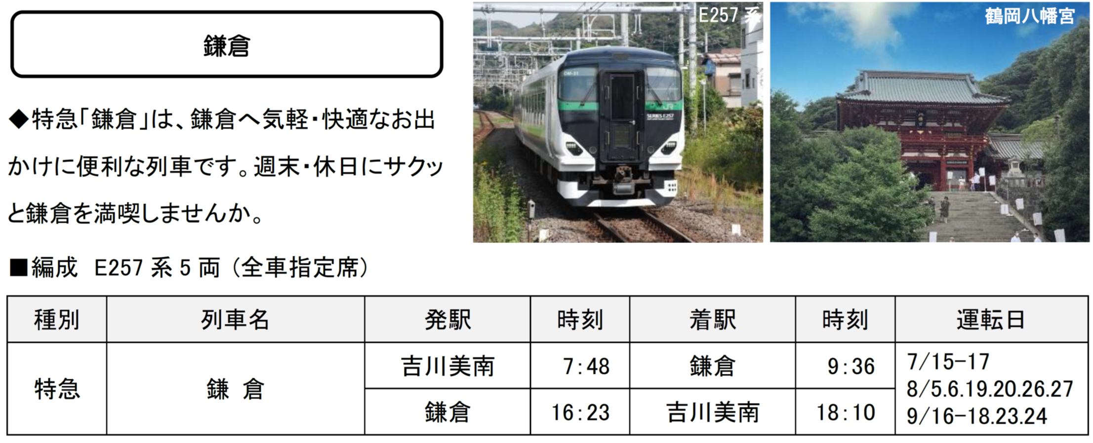 2023年7月1日(土) ~ 9月30日(土)の期間に、各地で夏のイベントに便利な列車を運転します。また、夏休みやお盆期間を中心に、首都圏と各地を結ぶ新幹線・特急列車を増発します。 |