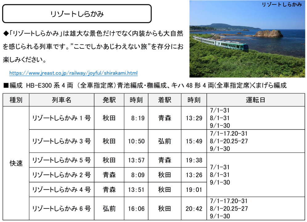 リゾートしらかみ https://www.jreast.co.jp/railway/joyful/shirakami.html