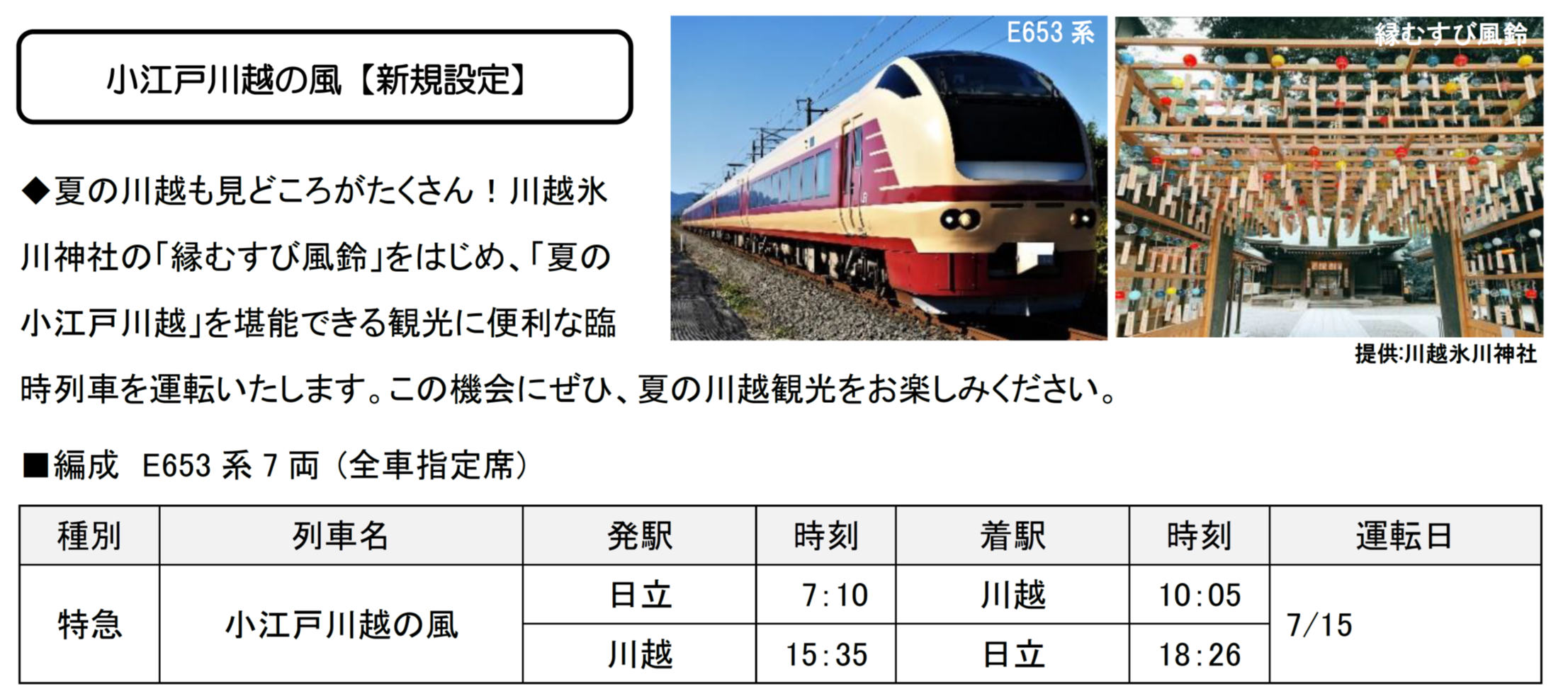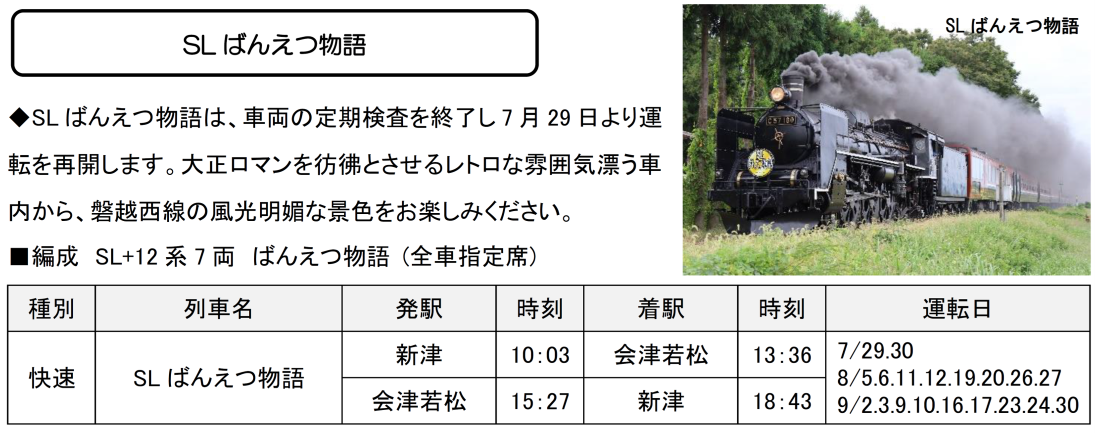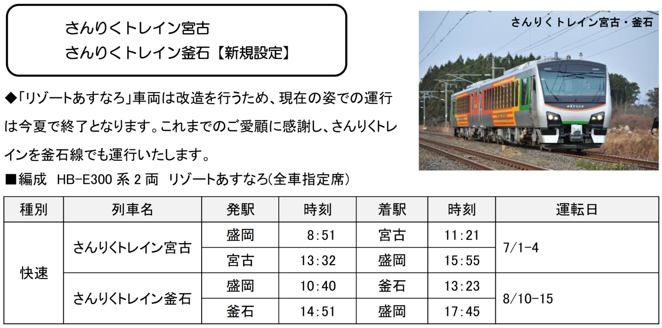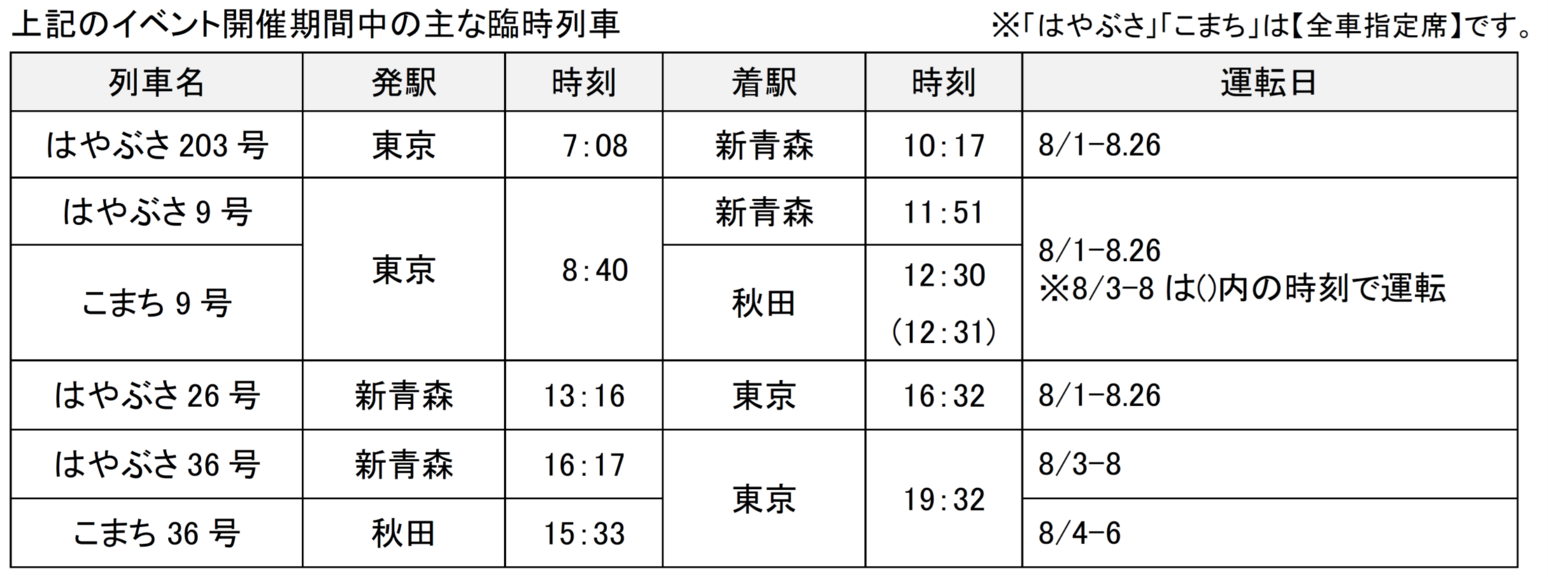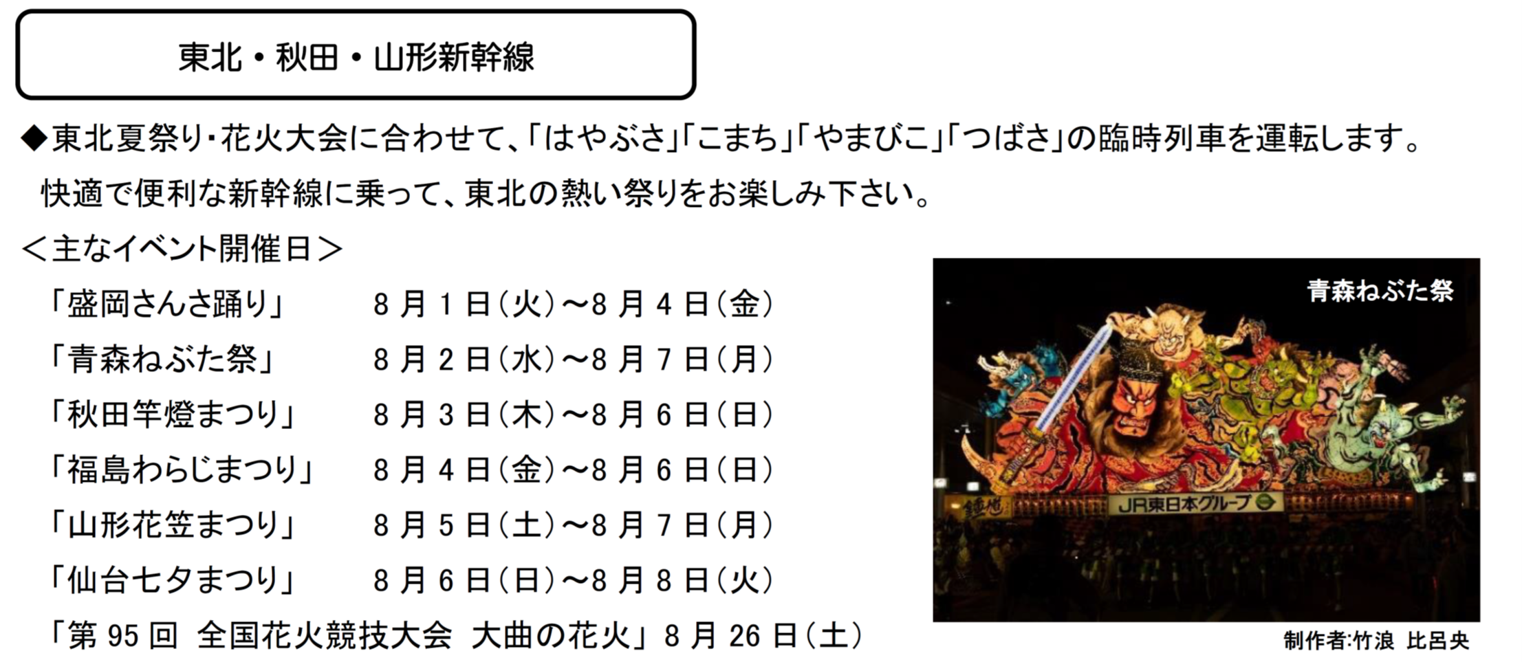東北夏祭りや花火大会などイベントに向けて、臨時列車を運転します。