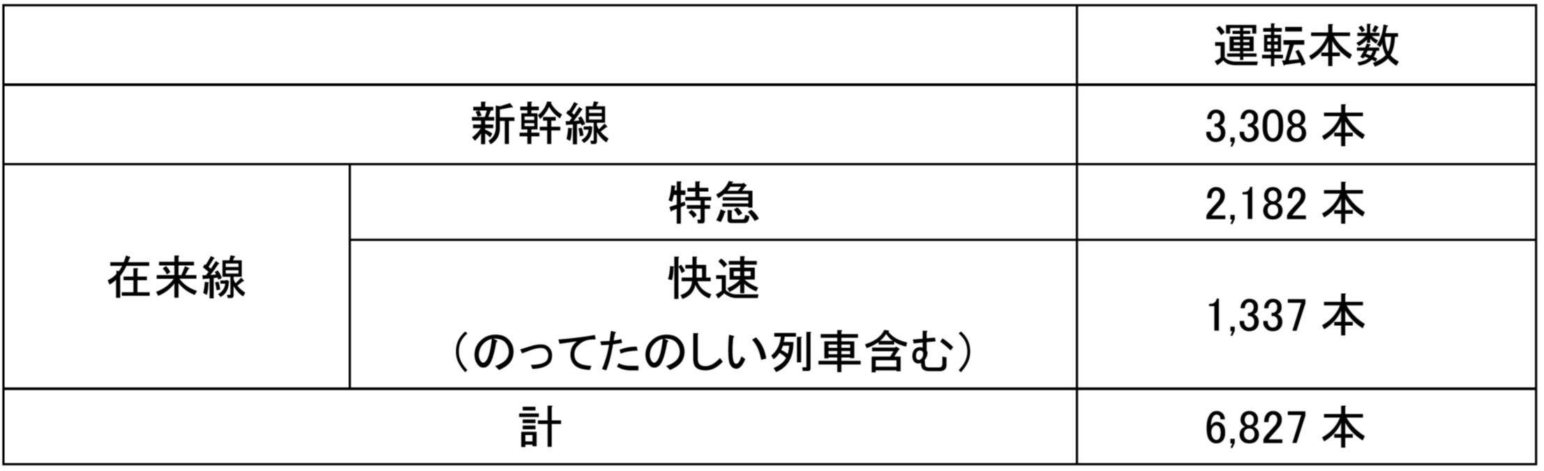 ※東北・山形・秋田新幹線のうち、併結して運転する列車は1本として計上しています。