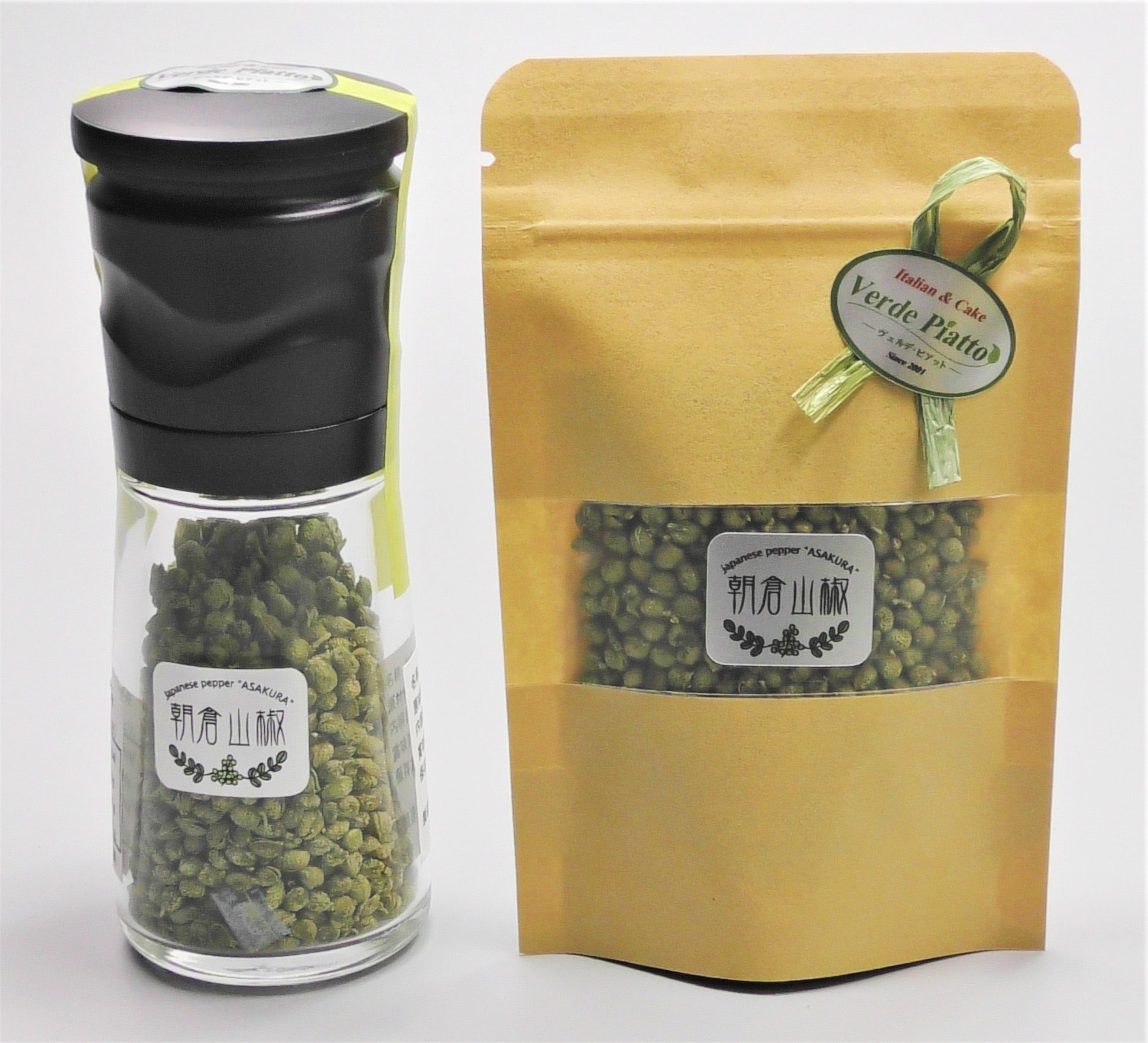 兵庫県養父市八鹿町朝倉発祥の「朝倉山椒」。江戸幕府への献上品とされた400年以上昔から大切に育てられている名産品です。粒が大きく香り豊かで、香り成分リモネン(柑橘系)が多く含まれフルーティーな香りが特徴です。