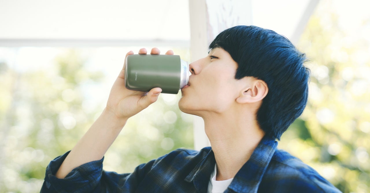 冷たさ・温かさを保つ真空二層構造で、冷たい缶飲料や飲みものを入れても結露することがありません。缶を入れて飲む時にはフチが口に当たらず、直接飲む時には凸凹のないなめらかなフチ形状で口当たりがよく、それぞれの使い方で飲みものをより一層楽しめます。収納や持ち運びがしやすいスタッキング構造です。
