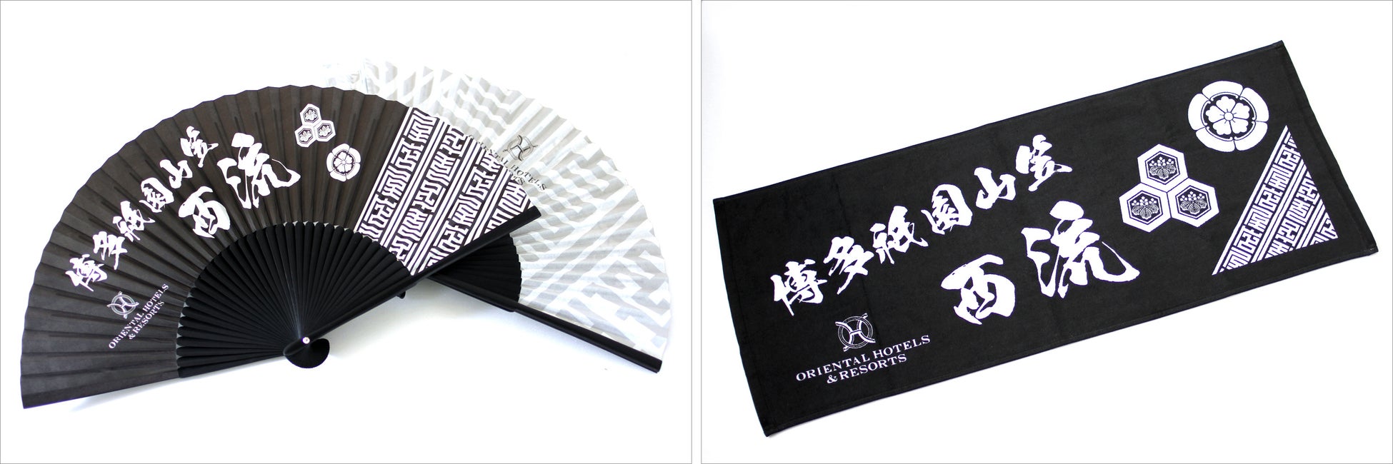 「博多祇園山笠」は、700年以上の歴史をもつ福岡博多を代表するお祭りで、山笠の基盤となる「七流(しちながれ)」のうち、今年も「西流(にしながれ)」ご協力のもと、オリジナルグッズをご用意。宿泊特典として、博多祇園山笠西流の文字に櫛田神社の紋や長法被の柄をあしらったホテルオリジナルデザインの「扇子」と「フェイスタオル」のいずれかをご提供いたします。
