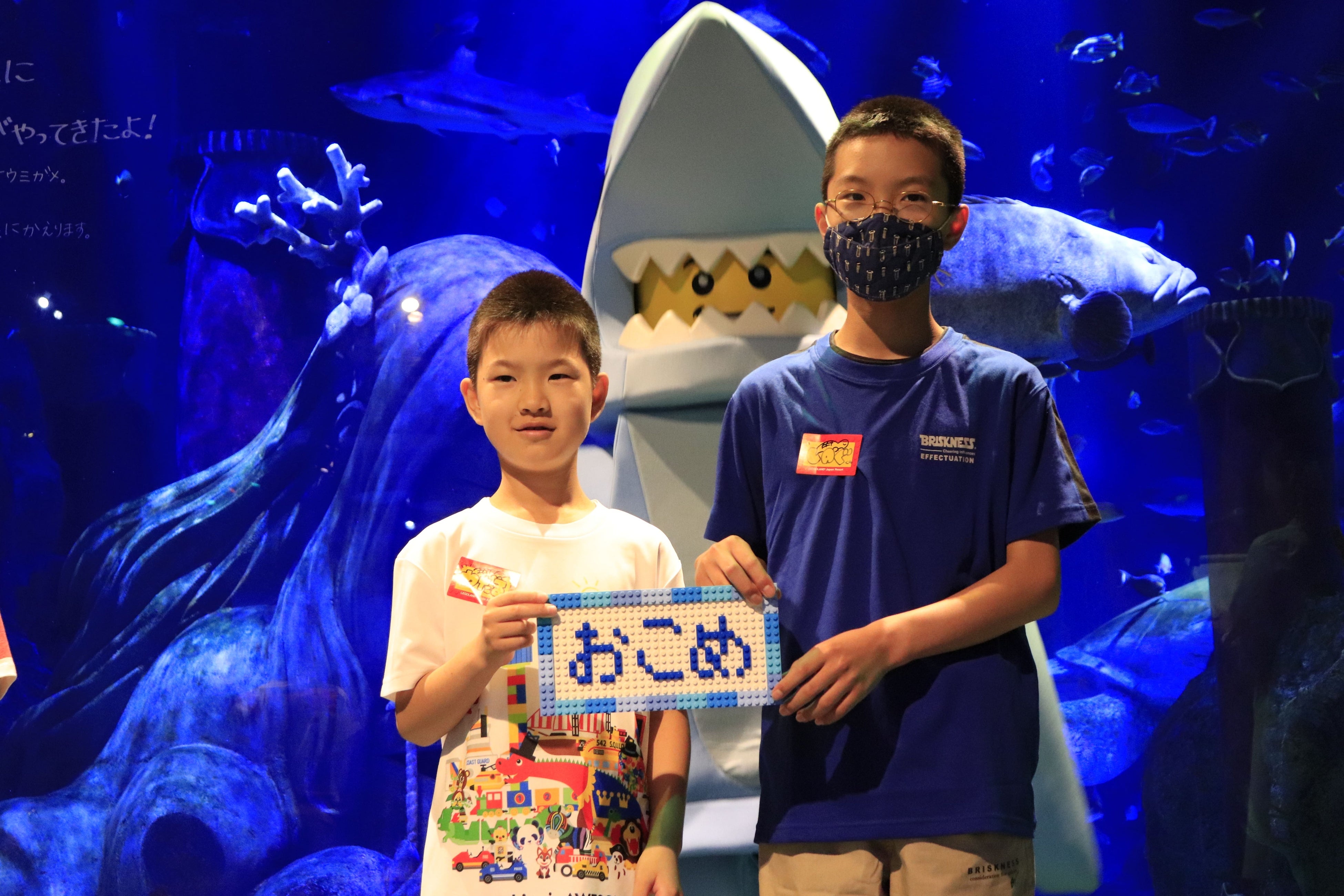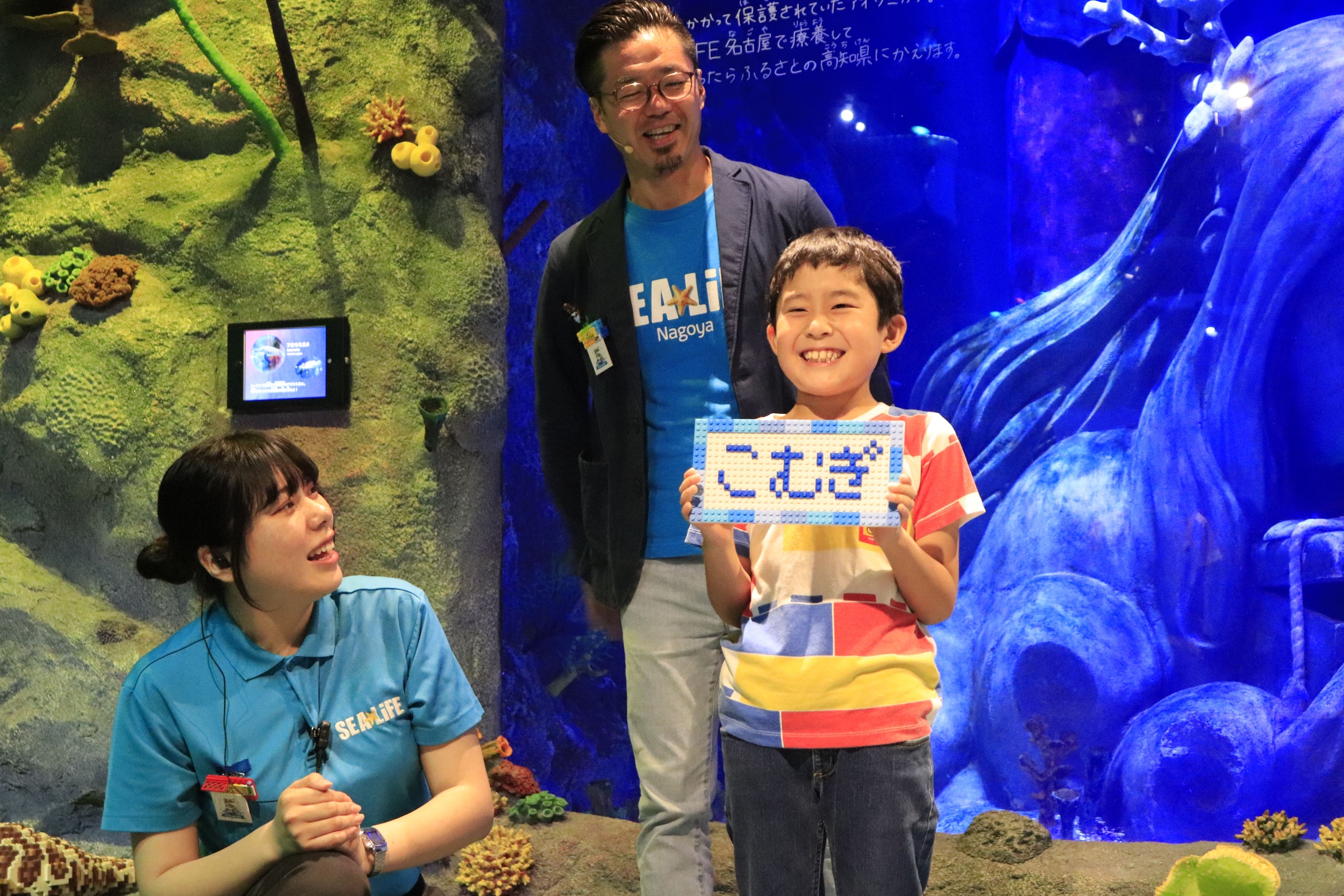 命名式には、レゴランド・ジャパン・リゾート社長の本多良行、シーライフ名古屋 館長の小川泰史、お馴染みのキャラクターシャークガイ、「こむぎ」の名づけ親である栗林(くりばやし)さんおよび「おこめ」の名付け親である家田(いえだ)さん兄弟が参加。レゴブロックで制作したそれぞれのネームプレートも公開され、記念品の贈呈と合わせてシーライフ名古屋スタッフ一同より感謝の意を示す盛大な拍手が送られました。