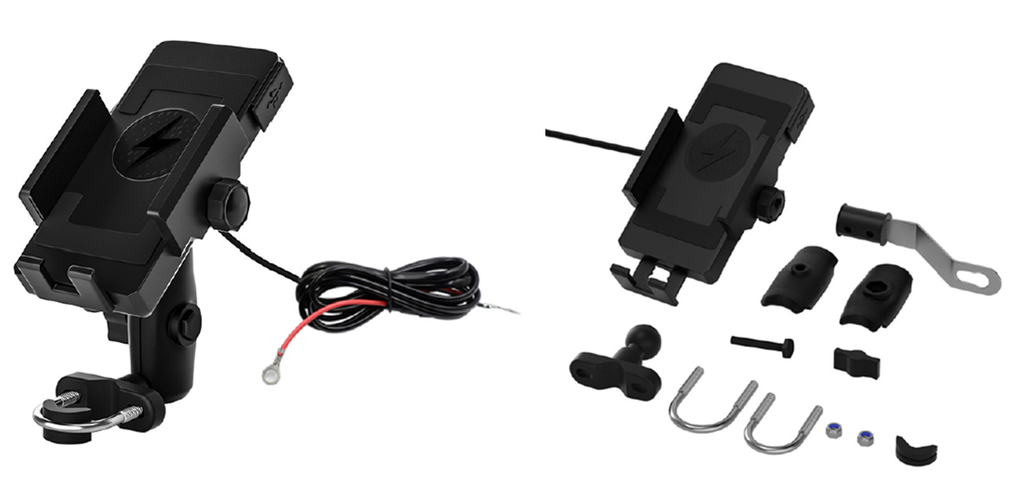 現在、スマートフォンを中心に『Qi規格のワイヤレス充電』が広がっています。ビーアンドプラスでは、このQi充電機能を組み込んだスマートフォンホルダーをリリースしました。Qi規格対応のスマホをホルダーへ装着すると、ワイヤレスで充電されます。電動自転車やバイクに乗車中にも充電ができるので、地図アプリ使用中に電池切れが起きてしまうような心配もなく、サイクリングやツーリングを楽しめます。