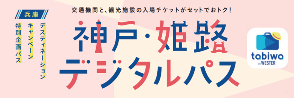 JR西日本では、せとうち・北陸エリアにおいて、安心・便利・おトクに観光を楽しむことができるツールとして観光ナビ『tabiwa by WESTER』のサービスを展開しています。この度、本年7月から開催される兵庫デスティネーションキャンペーンに合わせて兵庫県が新たに『tabiwa by WESTER』の対象エリアに加わります。またエリア拡大に合わせて、兵庫県南部をおトクに周遊できる「ICOCAでGO神戸・姫路デジタルパス」や、地元おすすめの観光・体験スポット等が利用できるおトクなtabiwaチケットを発売します。兵庫県へご旅行される際は、おトクで便利な『tabiwa by WESTER』ご利用ください!