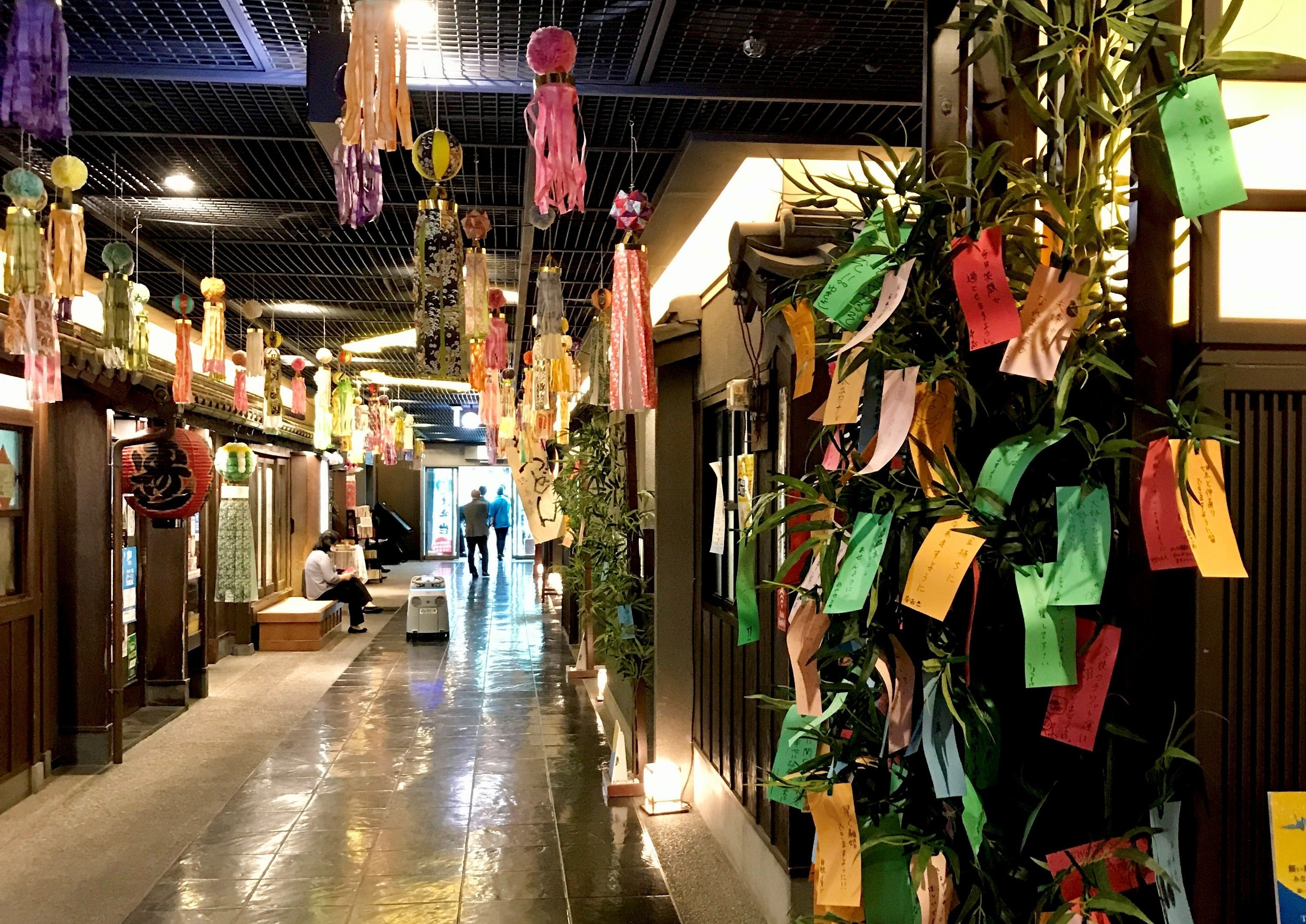 タワーイーストロビーや、地下1階「昭和レトロ商店街 滝見小路」にも大小さまざまな七夕飾りが飾られます。