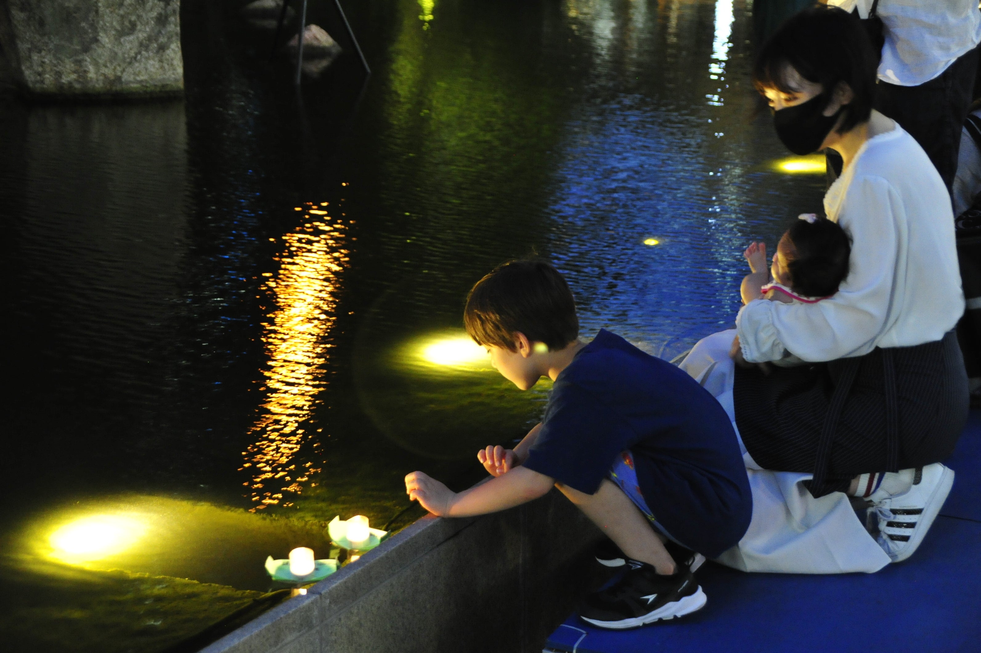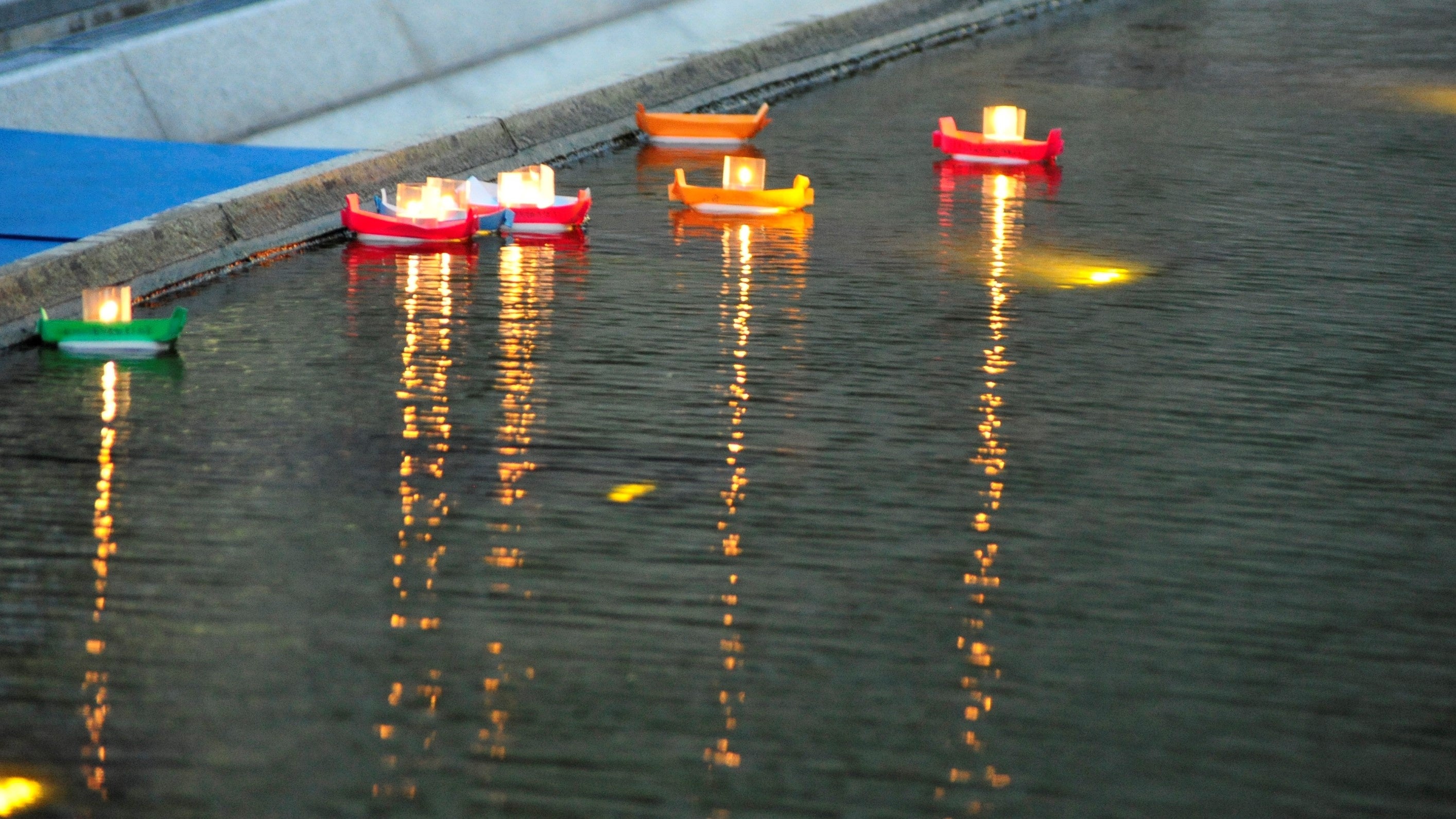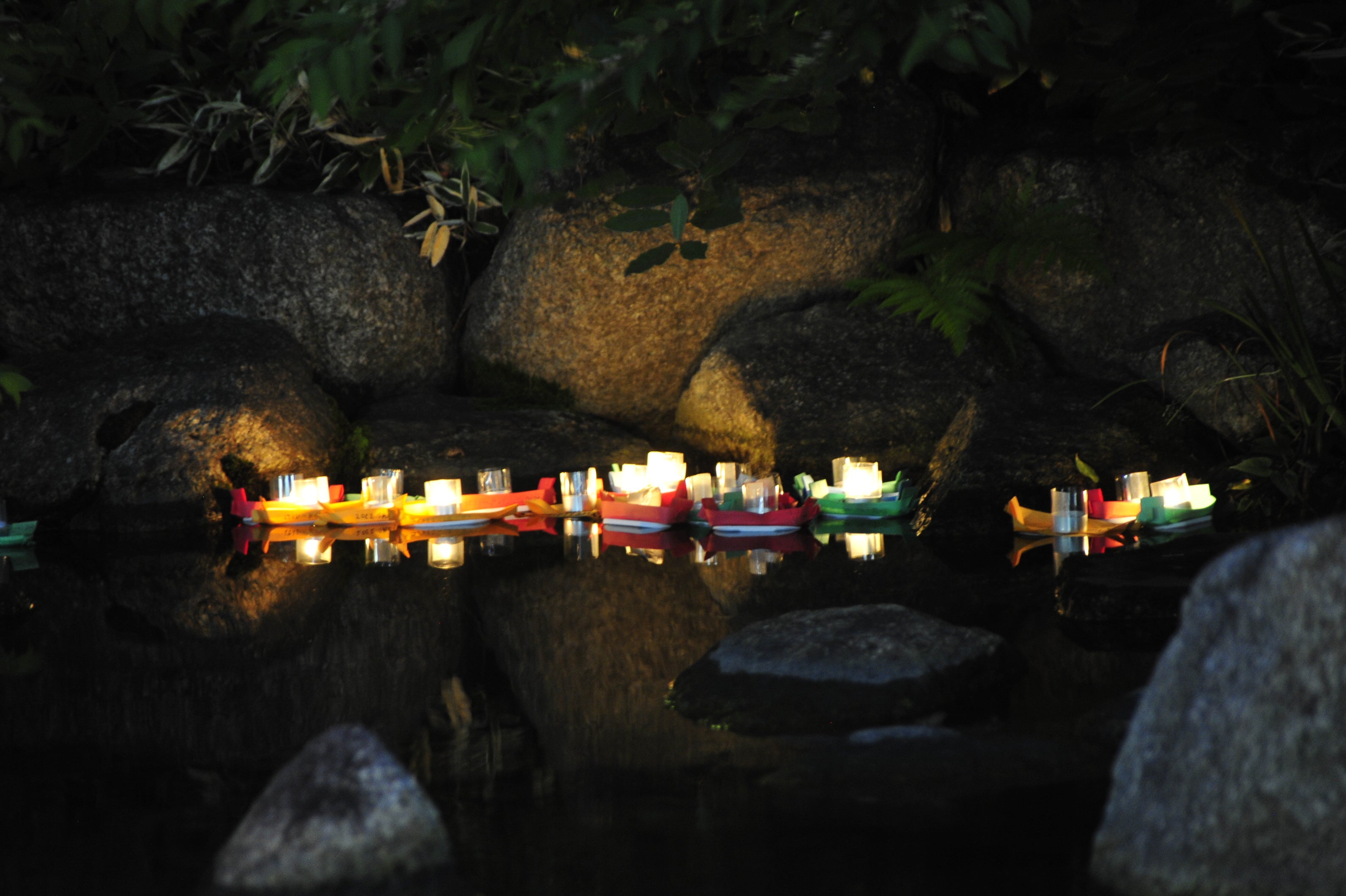 ろうそくを灯して想いを込めて池に浮かべてください。