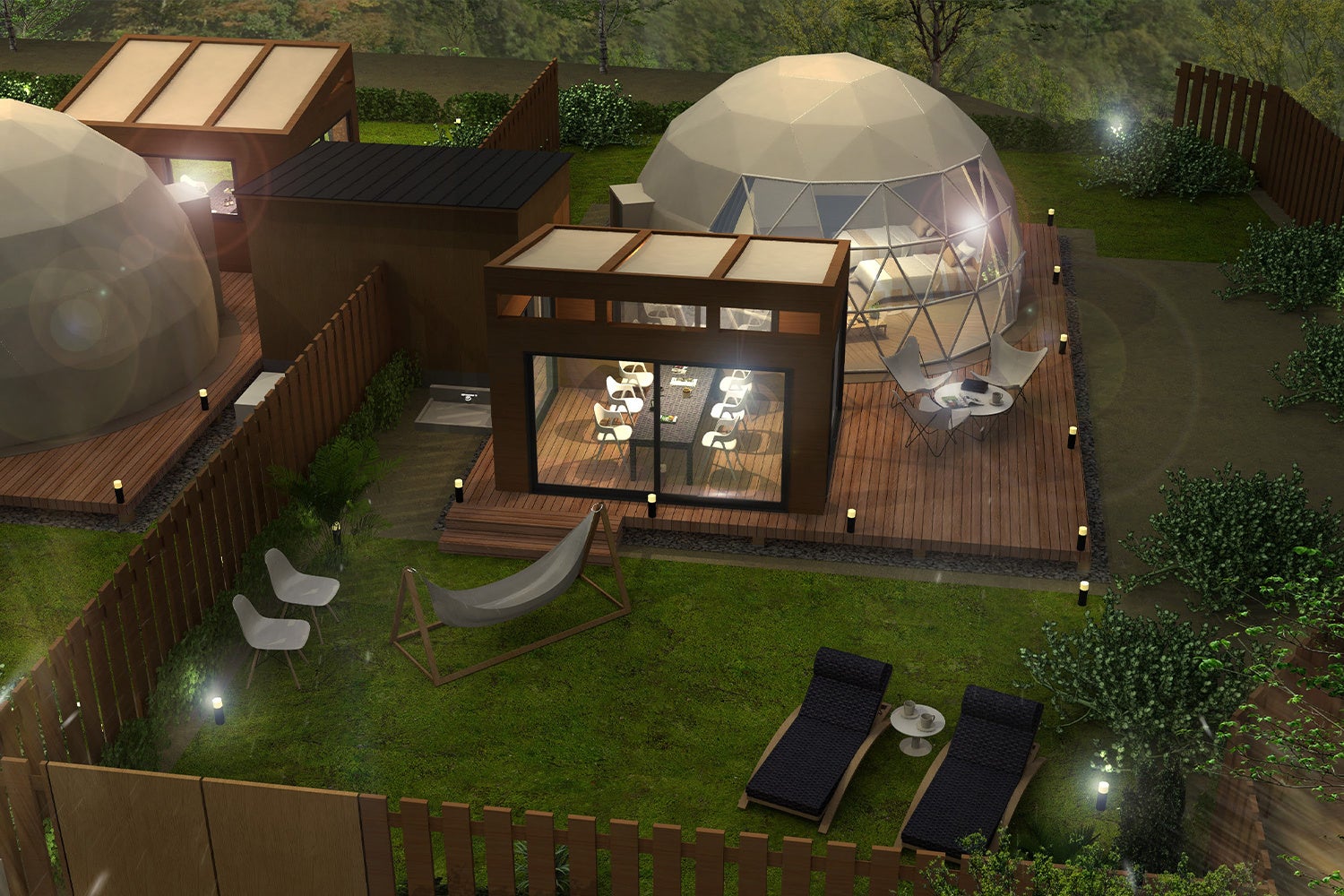 全てのお部屋/ドームテントのそばには個別に全天候型のアウトドアダイニングを設置。