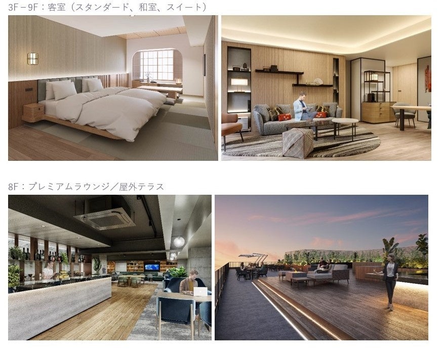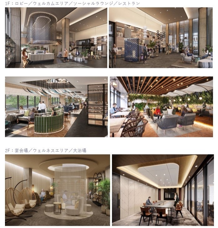 付帯施設:ロビー・ウェルカムエリア、ソーシャルラウンジ、レストラン、ウェルネスエリア、大浴場、フィットネスセンター、4宴会場・ミーティングルーム、プレミアムラウンジ、屋外テラス&バー