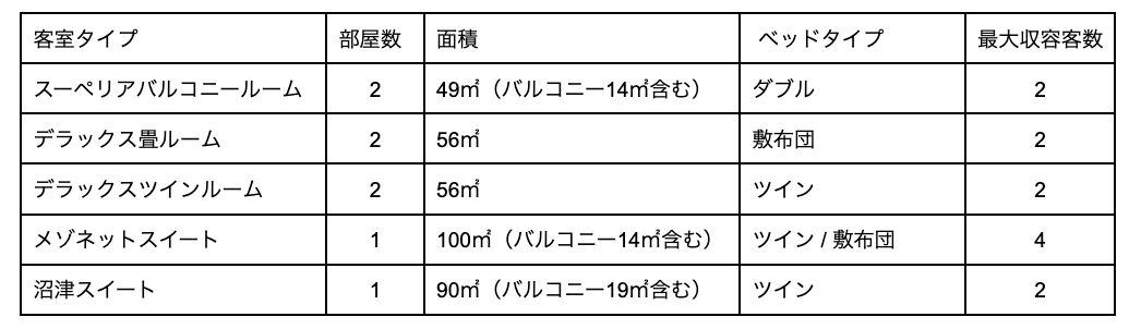 ゆったりとした時間を過ごしていただける沼津倶楽部の客室は、わずか8室。お布団でお休みいただく和室、広々としたバルコニー付きの洋室、和洋の要素が混在したメゾネットなど、様々な客室タイプをご用意しています。さらに、8室のうち1室は、京都・西陣にて1688年の創業以来、長きにわたり着物文化の継承に取り組み、また独自の革新技術によって生み出される西陣織のテキスタイルを、世界のインテリアマーケットで展開するHOSOOが手掛け、「沼津スイート」として新たに生まれ変わります。