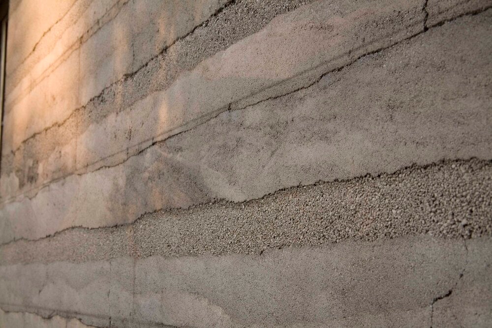 富士川の砂と土を積層させた版築壁は、陽の移り変わりにより、土の堅さと柔らかさの表情を刻一刻と変化させながら風景に溶け込みます。また、屋根に使われている吉野杉を生きている素材と捉え、ほとんど無垢のまま加工せず、びっしりと並べた上から押さえつけるだけで作られています。そして富士の湧水が滾々と注がれる水盤は、夏は涼しげなせせらぎを、冬はあたたかな陽の光を受け、時に建物の陰影を水面に映し込みながら、四季折々の姿で人々を楽しませてくれます。