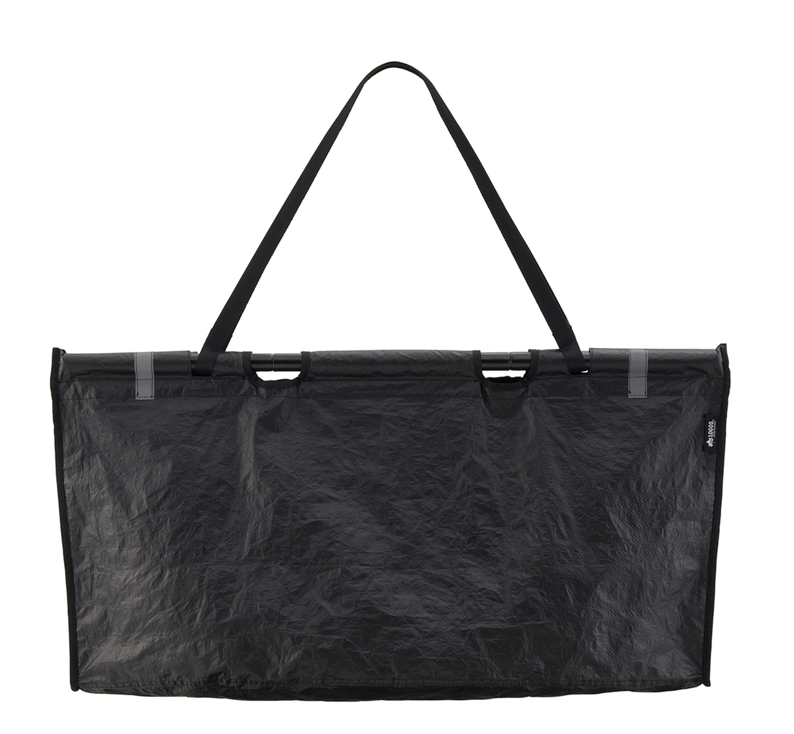 キャンプ用品の運搬に適した大容量のトートバッグ。両端のジッパーを開けば、テントやチェアなどの大きなもの、長いものもまとめて持ち運べる。