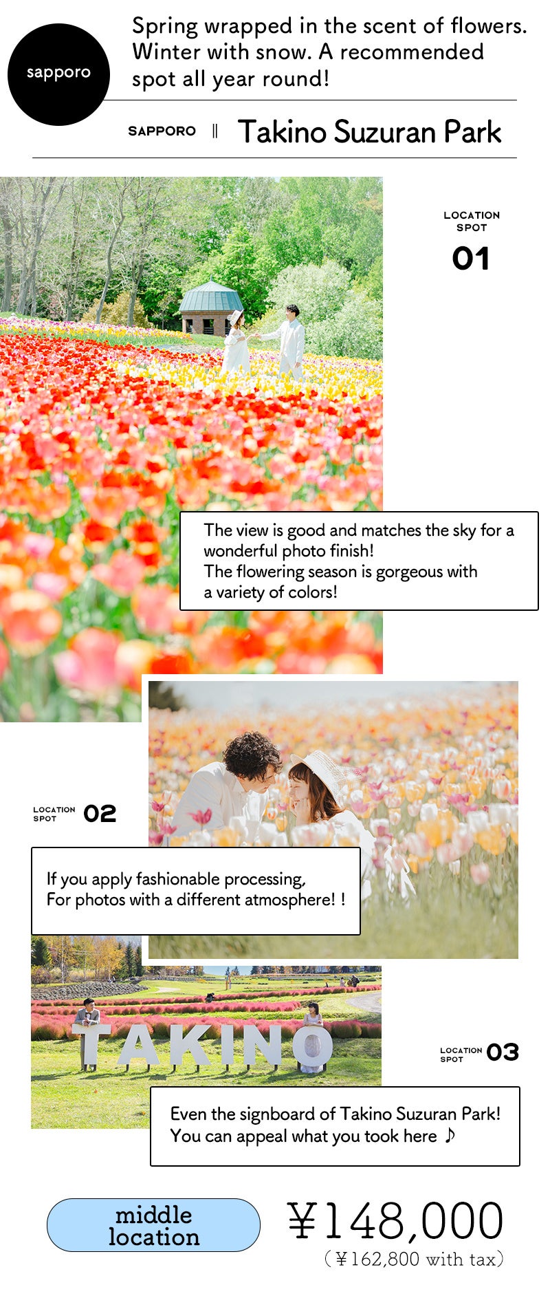 北海道唯一の国営公園でもあり、四季折々のお花たちと一緒にご撮影いただけます。