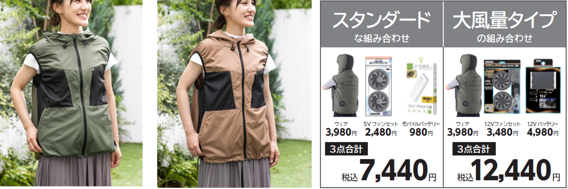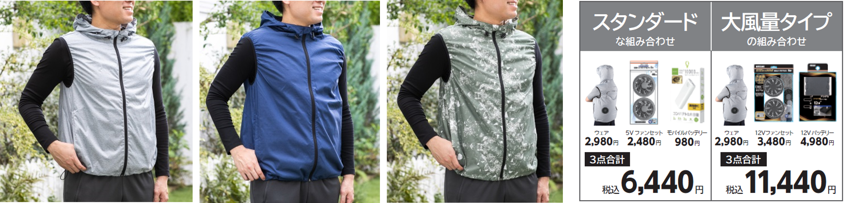 ②スタンダードセット(ウェア+5Vファンセット+モバイルバッテリー) 6,440円(税込)
