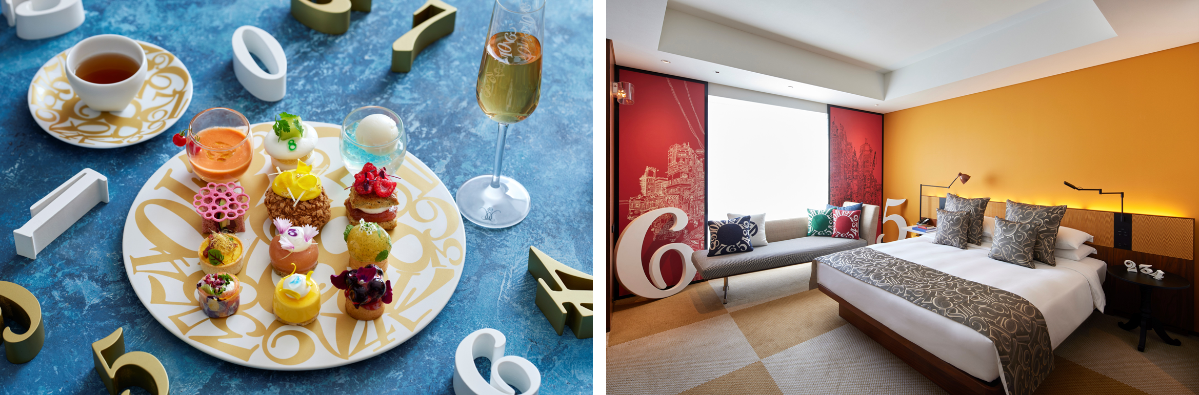 客室内にはフランク ミュラー フューチャー フォームより、象徴的なビザン数字を施したインテリアが置かれ、フランク ミュラーならではのデザイン性の高い時空間を演出しています。特典として、 FRANCK MULLER Color Dreams Afternoon Tea」をお部屋でお楽しみいただけるほか、フランク ミュラー パティスリー和三盆きな粉サブレのお土産をお持ち帰りいただけます。 ハイアット セントリック 銀座 東京とフランク ミュラーがお届けする、夏を彩るひとときをお過ごしください。