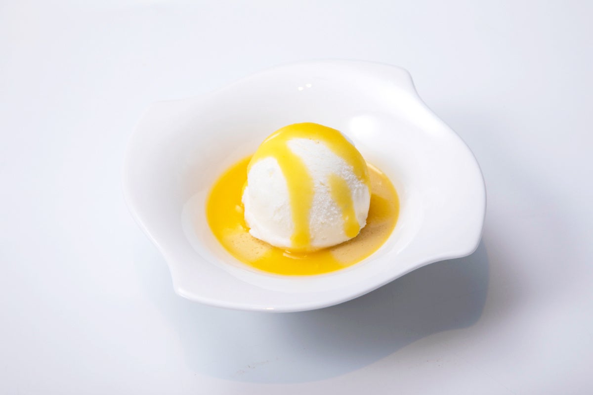宮崎県産マンゴープリンにアイスを乗せた、濃厚でクリーミーな味わいをご堪能ください。