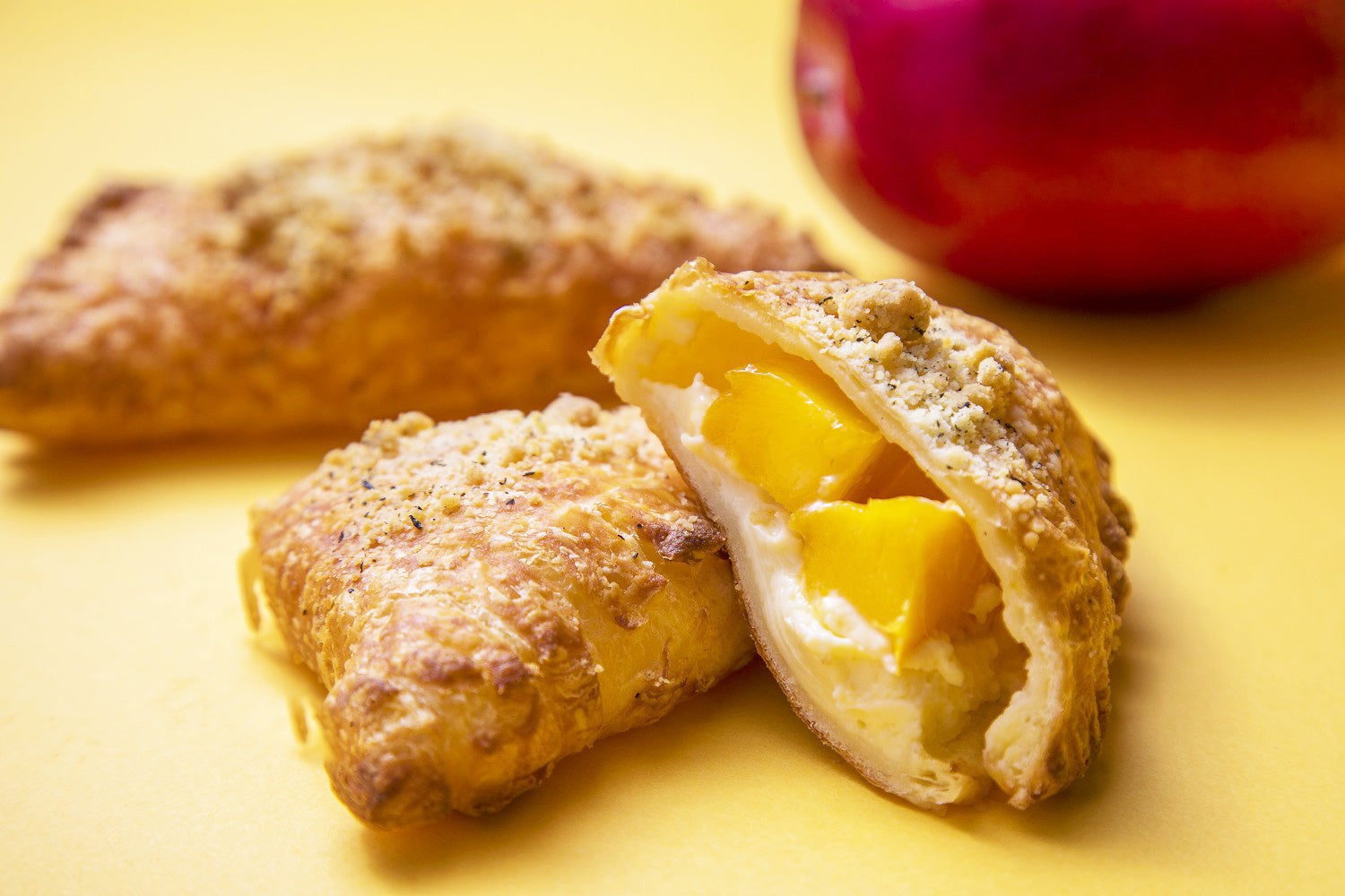 宮崎県産マンゴーとチーズ入りのカスタードクリームを、クロワッサン生地で包み、焼き上げました。表面には宮崎県美郷町の紅茶を纏わせており、マンゴーの甘みをより引き立たせてくれます。