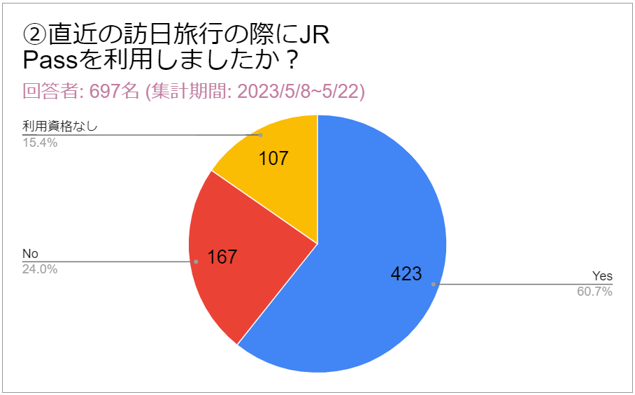 ②直近の訪日旅行の際にJR Passを利用しましたか?