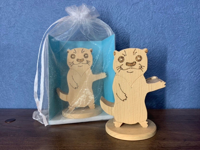 伊勢シーパラダイスのカワウソを担当する飼育スタッフがデザインし、木工職人さんが1つずつ丁寧に制作したオリジナルカードスタンドです。