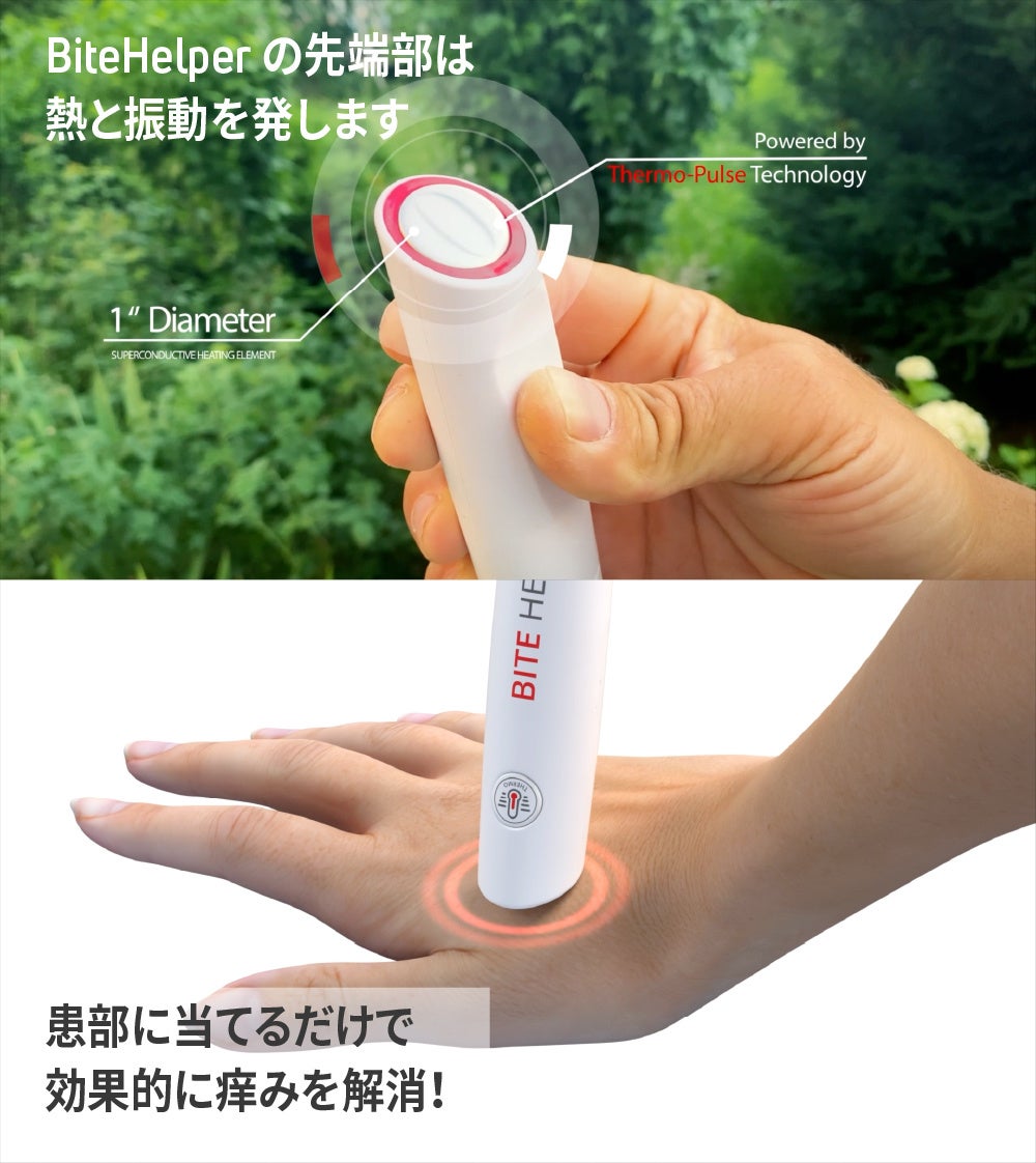 BITE HELPER(バイトヘルパー)は画期的なThermo-Pulse Technology™によって、熱と振動で患部の痒みを素早く緩和します。