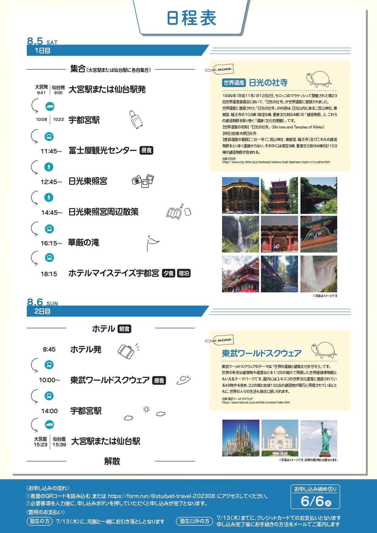 令和5年8月5日(土)~8月6日(日)大宮駅または仙台駅集合・解散 |