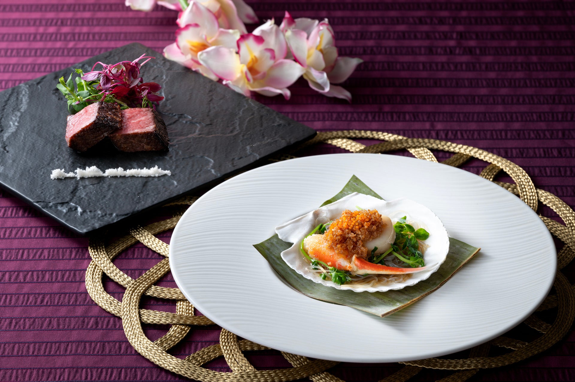 柔らかい赤身と、さっぱりした脂が特徴のブランド道産牛に、ニンニクの風味と食感が帆立と蟹の旨味を引き立てる一品を贅沢に味わうディナーコースと、北海道・函館の食材をリーズナブルに味わっていただけるランチコースをご用意。