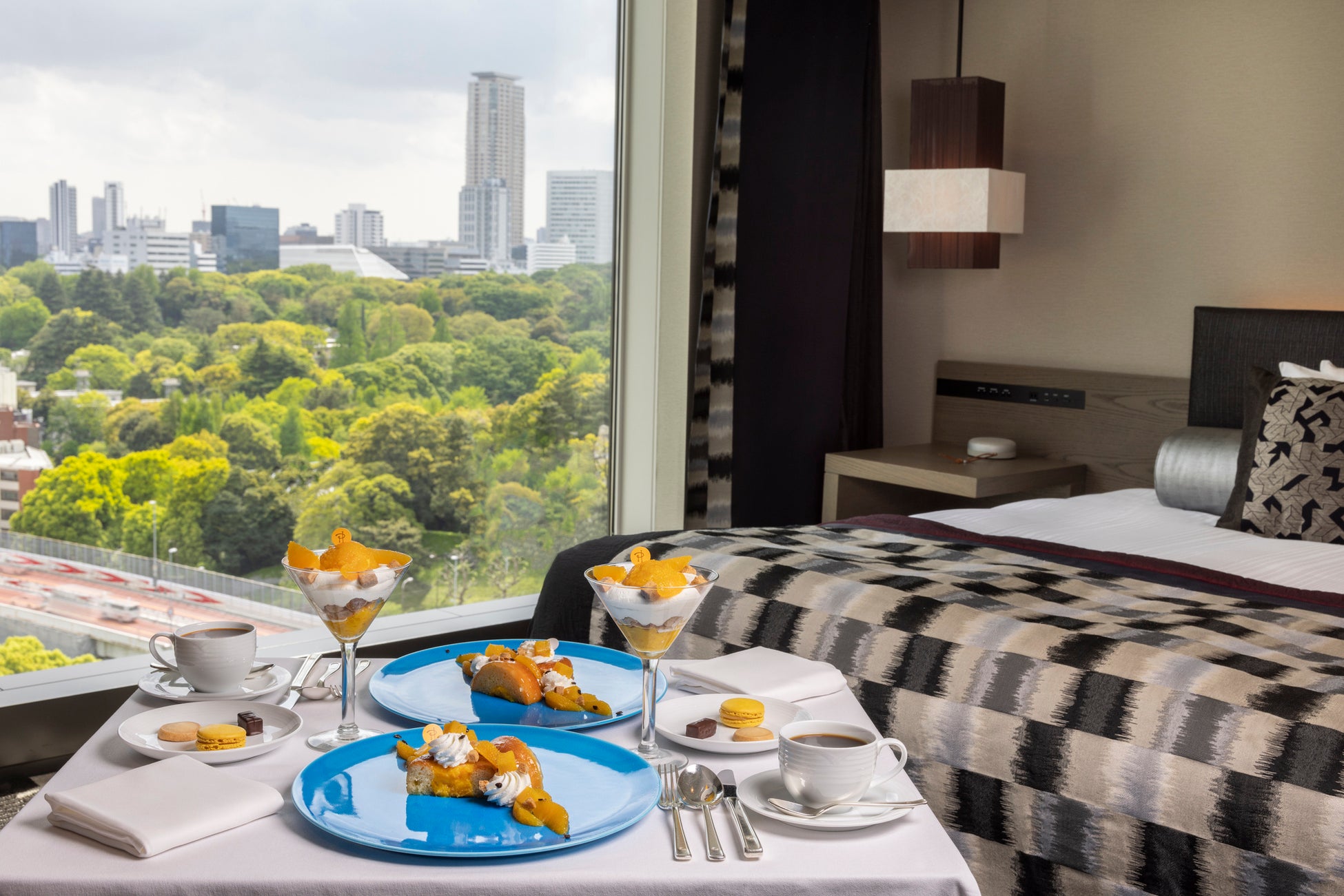 スイーツ旅の締めくくりには、快適なお部屋で人目を気にせずゆったりとお召し上がりいただけるルームサービスの朝食もおすすめです。シェフが丁寧に焼き上げたホテル伝統のクラシックパンケーキ、またはフレンチトーストをお選びいただき、季節のフルーツ盛り合わせと一緒に愉しめるプラン限定の朝食をお部屋にお届けいたします。
