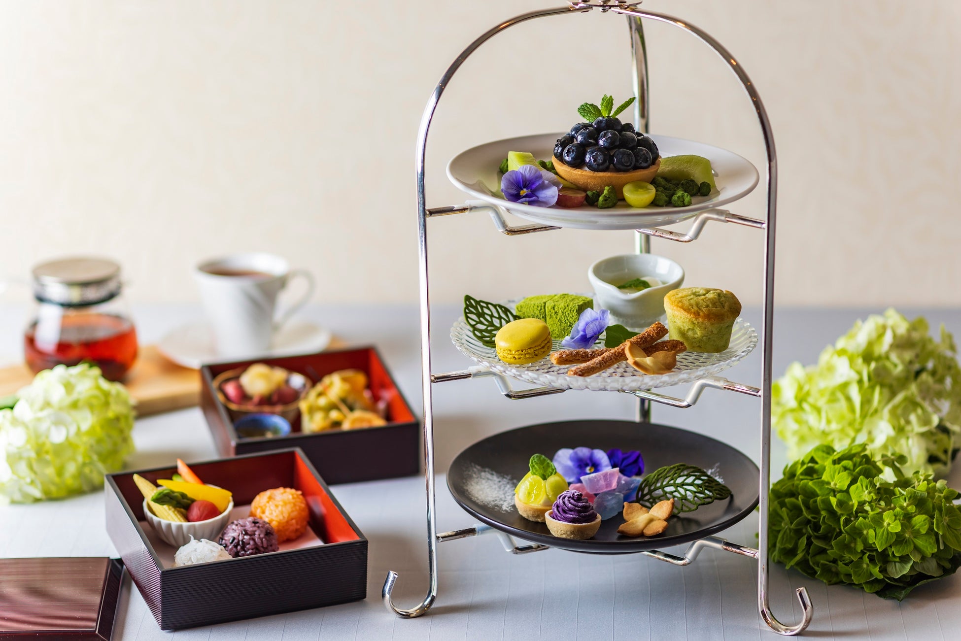 梅雨の到来を知らせてくれる鎌倉を代表する花、紫陽花。大きな窓一面に咲き誇る紫陽花を眺めることのできるラウンジ あじさいでは、あじさいをイメージした「あじさいデザートプレート」をご用意いたしました。紫陽花散策の休憩にぴったりな「かまくらAJISAIアフタヌーンティー」では、紫陽花に見立てたケーキや、新緑の爽やかな季節をイメージしたデザートの数々、和のテイストを感じるセイボリーをお楽しみいただけます。湘南の海、富士山、江の島を一望できる絶景とともに、紫陽花が咲き初夏の気候に包まれる古都鎌倉をお楽しみください。