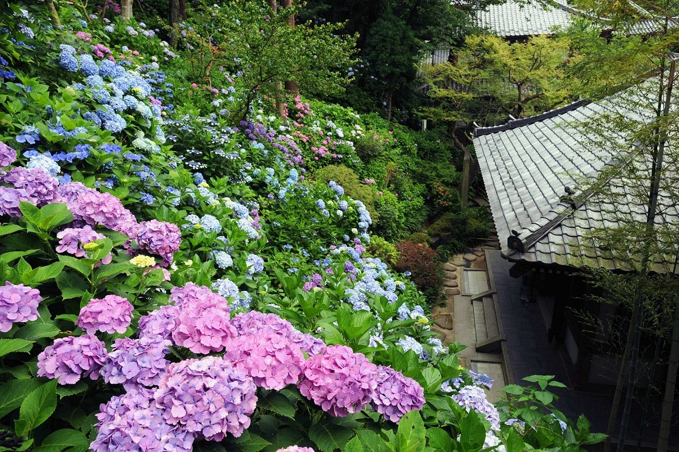 緑深い境内は四季を通じて花が絶えることがなく、「鎌倉の西方極楽浄土」と呼ばれています。