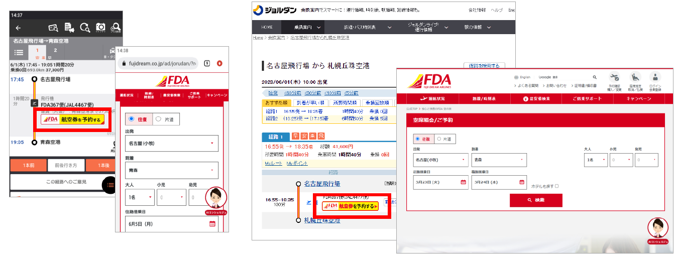 今後も両社では、今回のアフィリエイト連携をきっかけとして、ジョルダンの「乗換案内」を活用したFDA就航各地での連携策を検討してまいります。