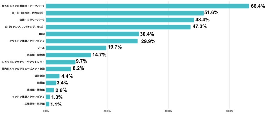 屋外メインの遊園地や、海・山・川、公園に行く予定を