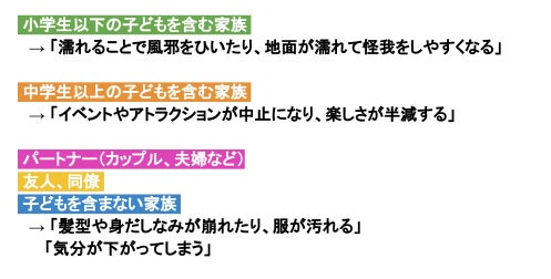 ▼雨を理由にお出かけの予定を変更・中止するお出かけ先