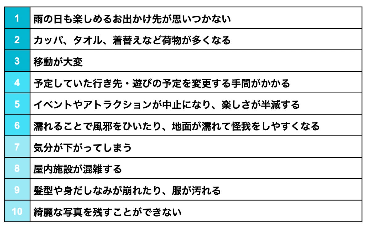 1位は「雨の日も楽しめるお出かけ先が思いつかない」