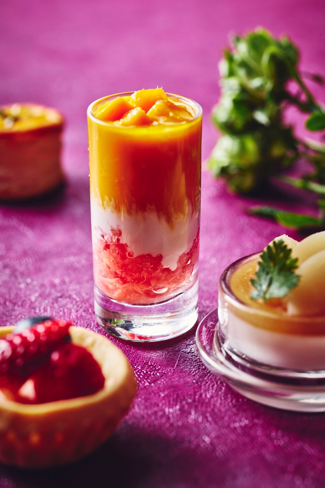 五香粉の華やかなマンゴー&パイナップルジャムとマンゴーとパイナップルの大胆な角切り果実とともに焼き上げたパイ。