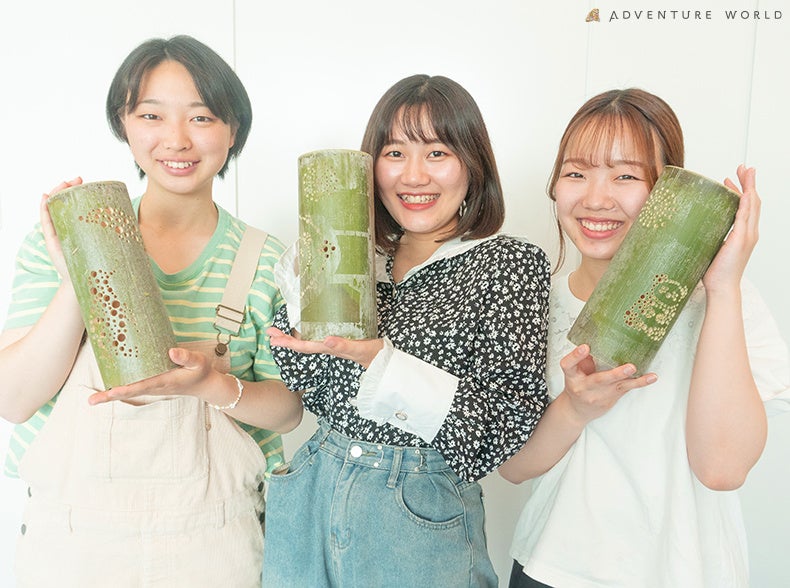 展示③ BohNoの学生とパークスタッフが一緒に作った竹あかりでブース内を装飾