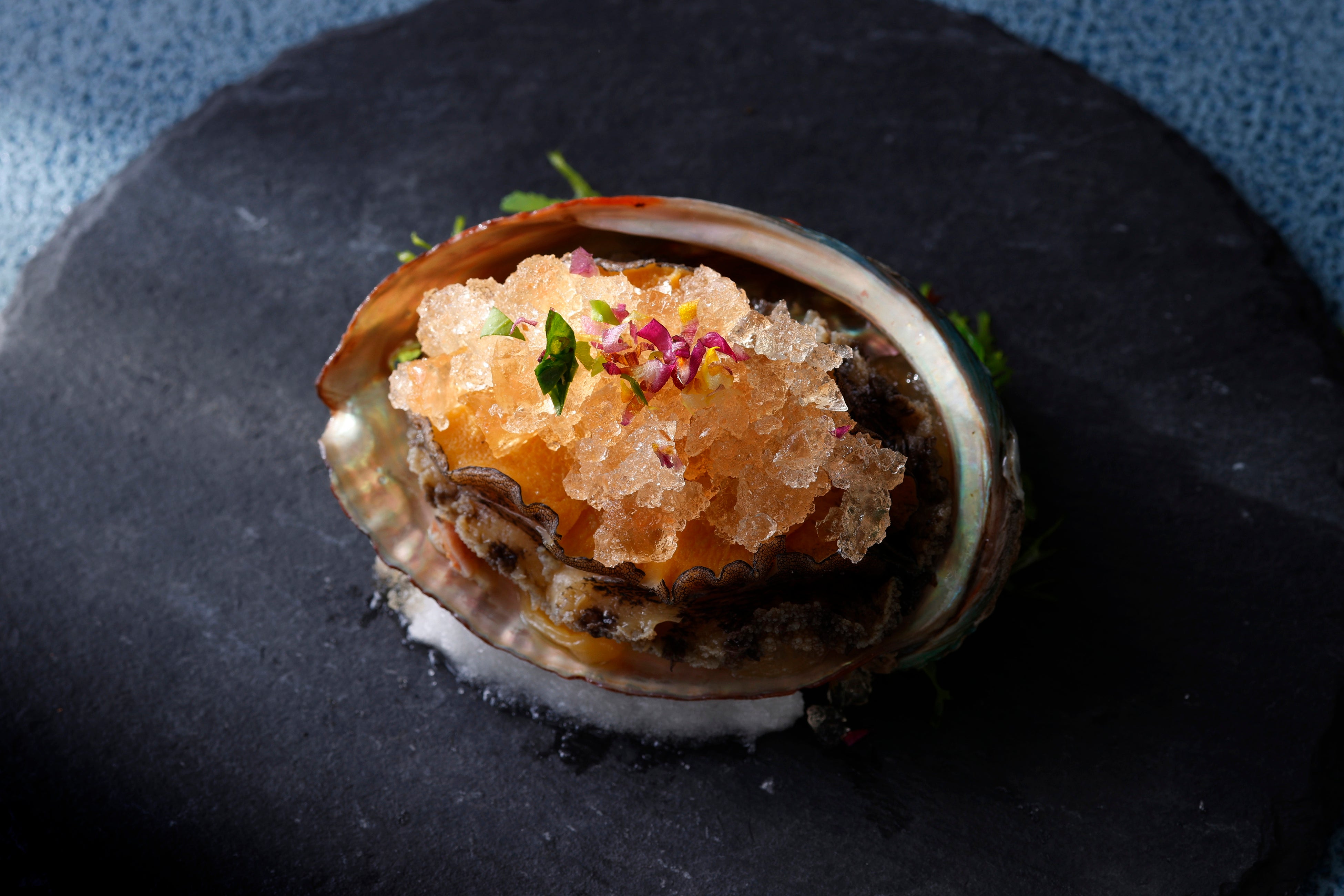 〇 蝦夷鮑の冷菜 上湯スープジュレ ¥3,800 (税・サービス料込)